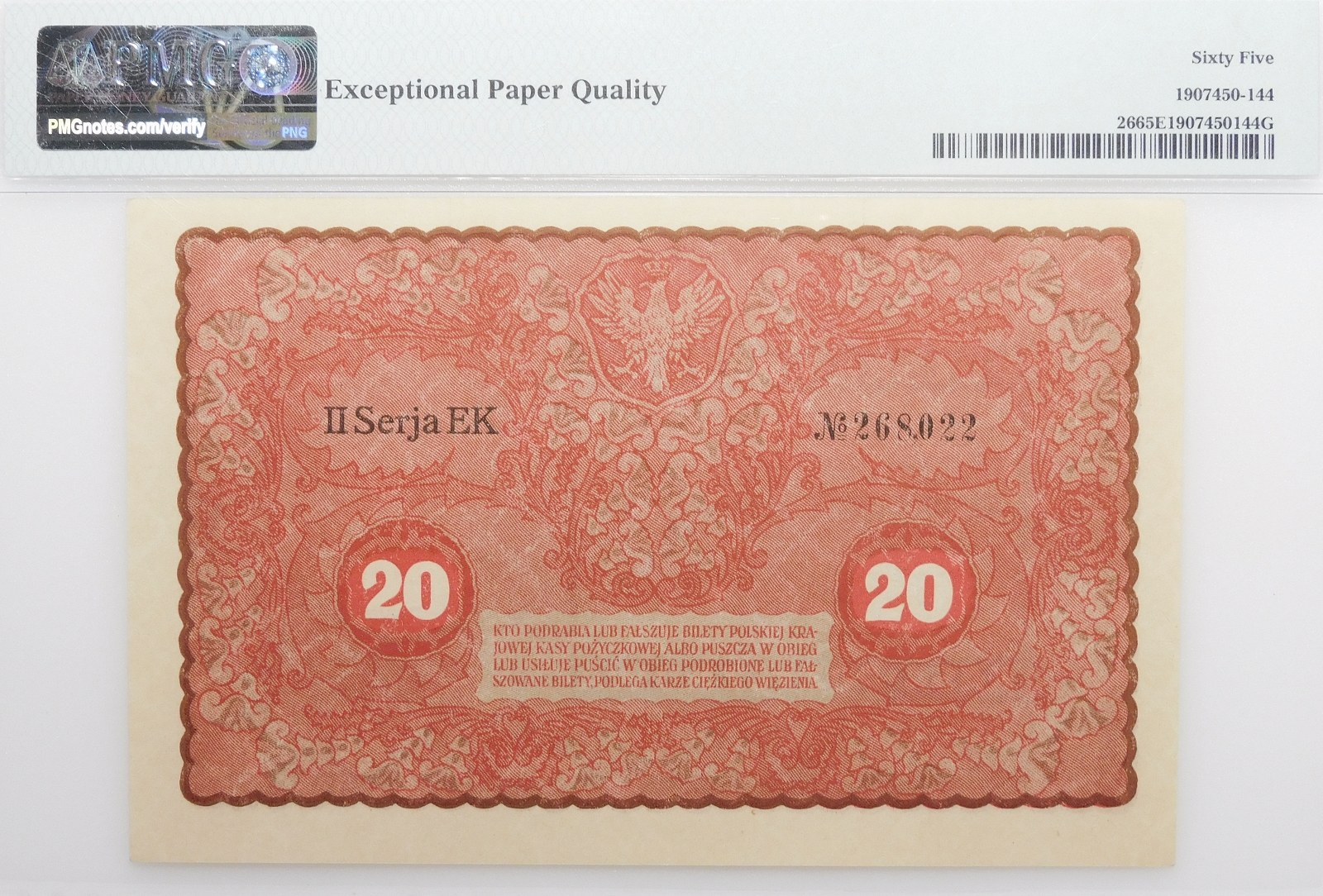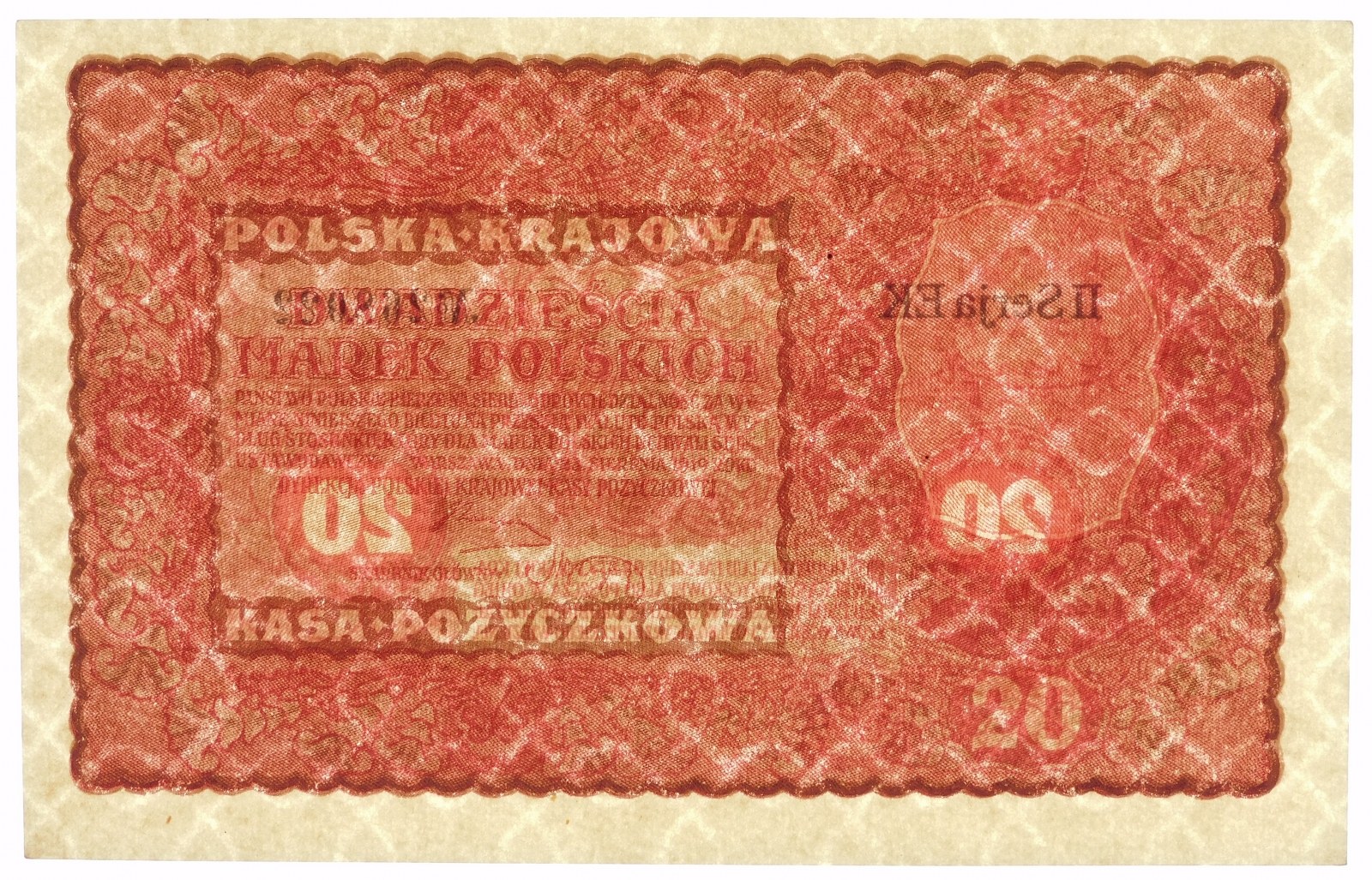 Banknot 20 marek polskich 1919, serii : II Serja EK, tzw. emisji wiedeńskiej.