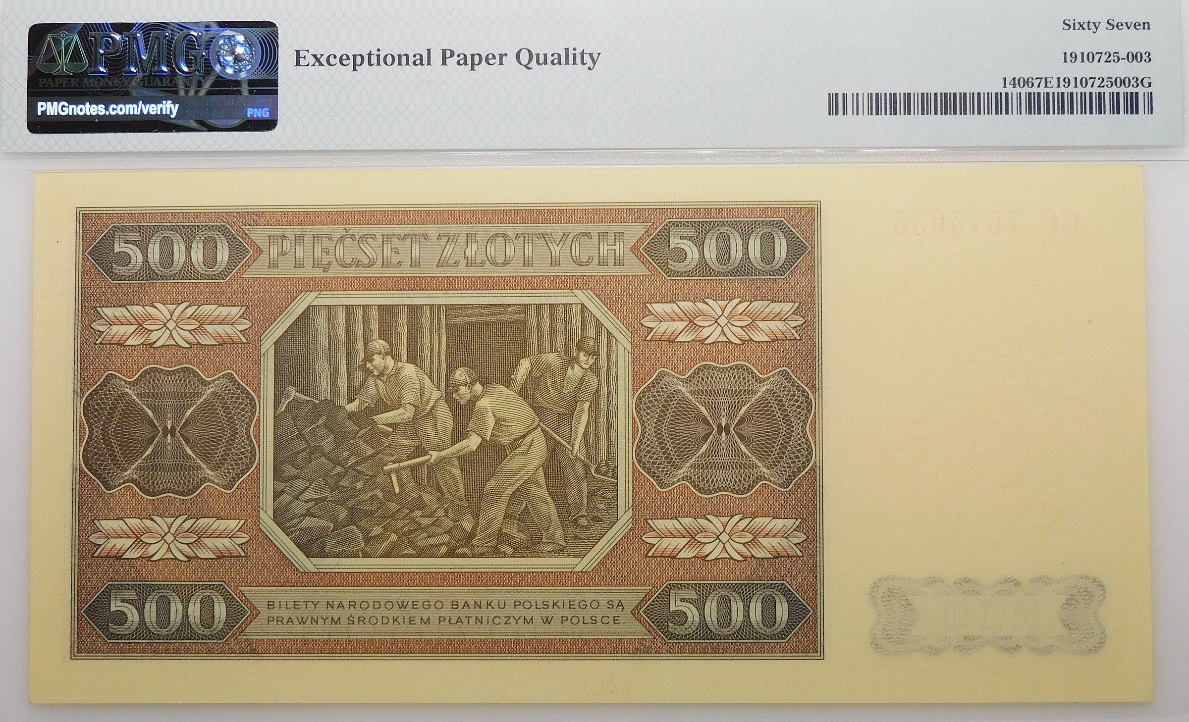 Atrakcyjny egzemplarz, potwierdzony wysoką notą gradingową PMG, z adnotacją EPQ świadczącą o wyjątkowej jakości papieru - jest to 2-ga MAX NOTA tego banknotu w rejestrze PMG.