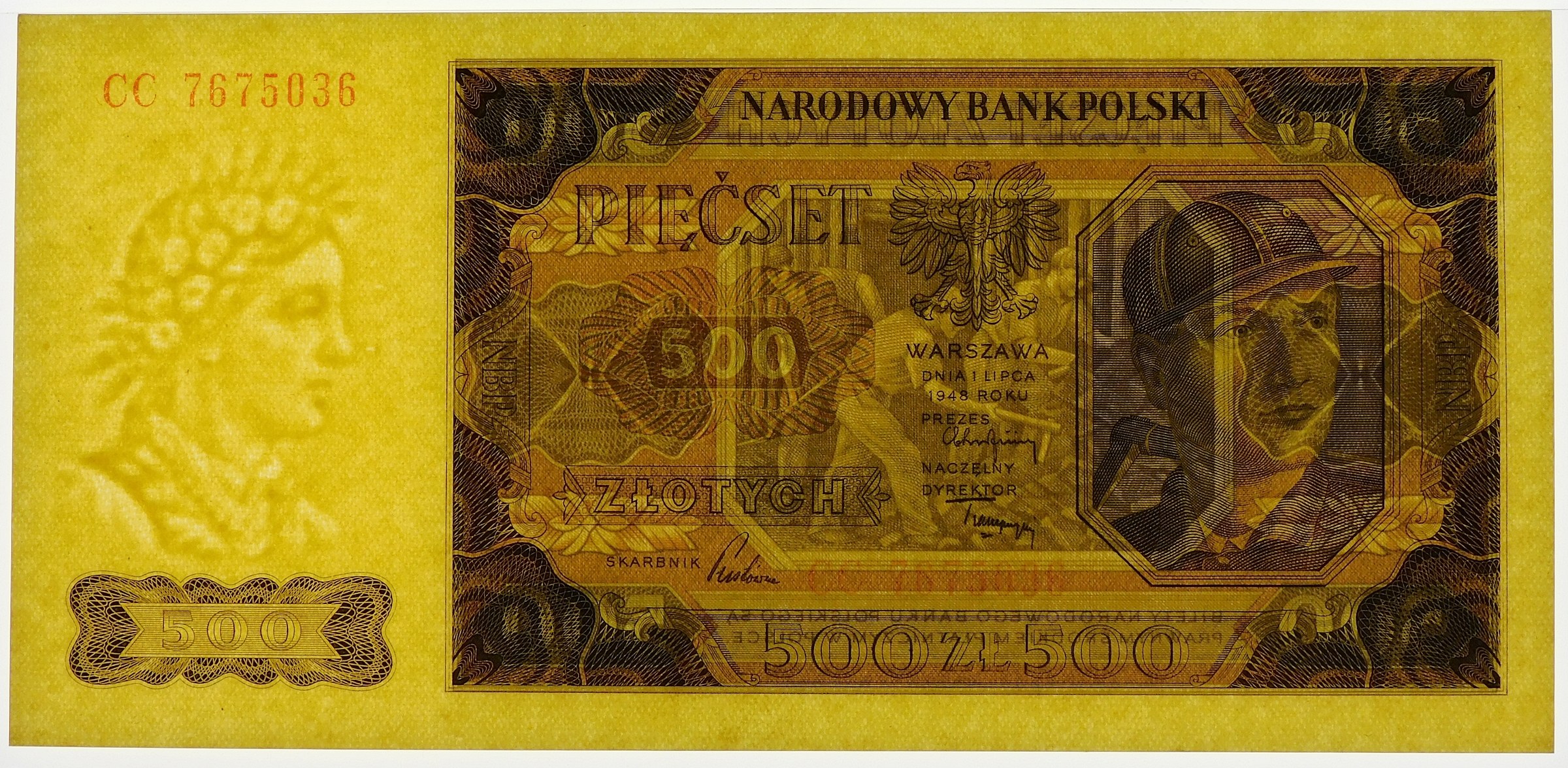 Banknot 500 złotych 1948 , serii CC