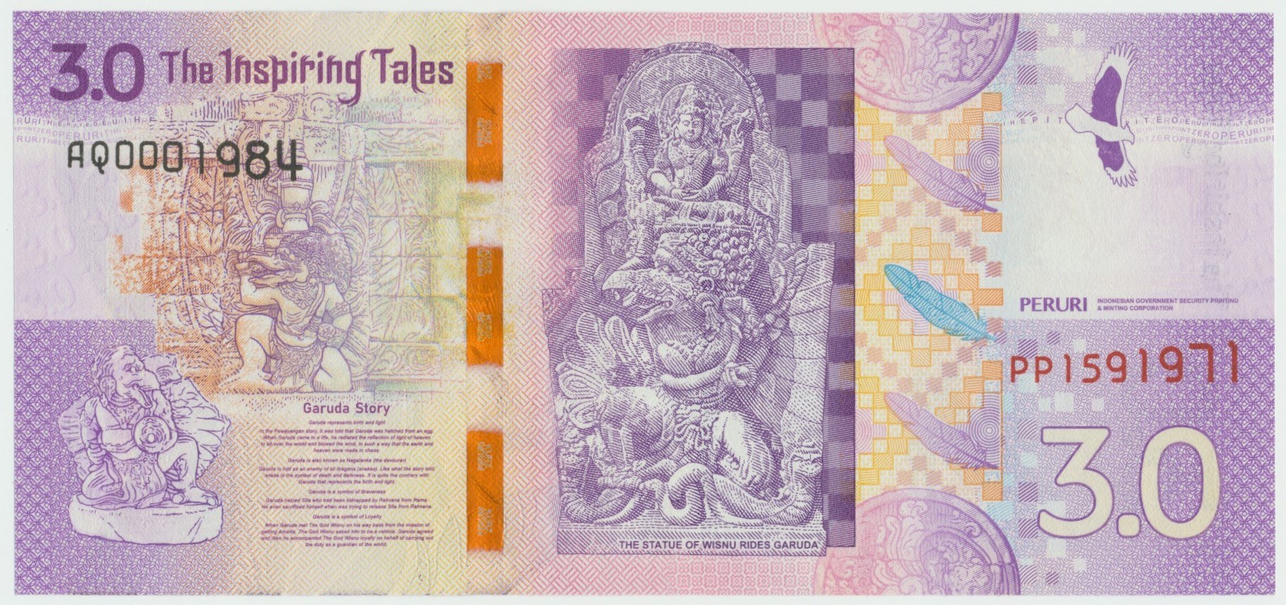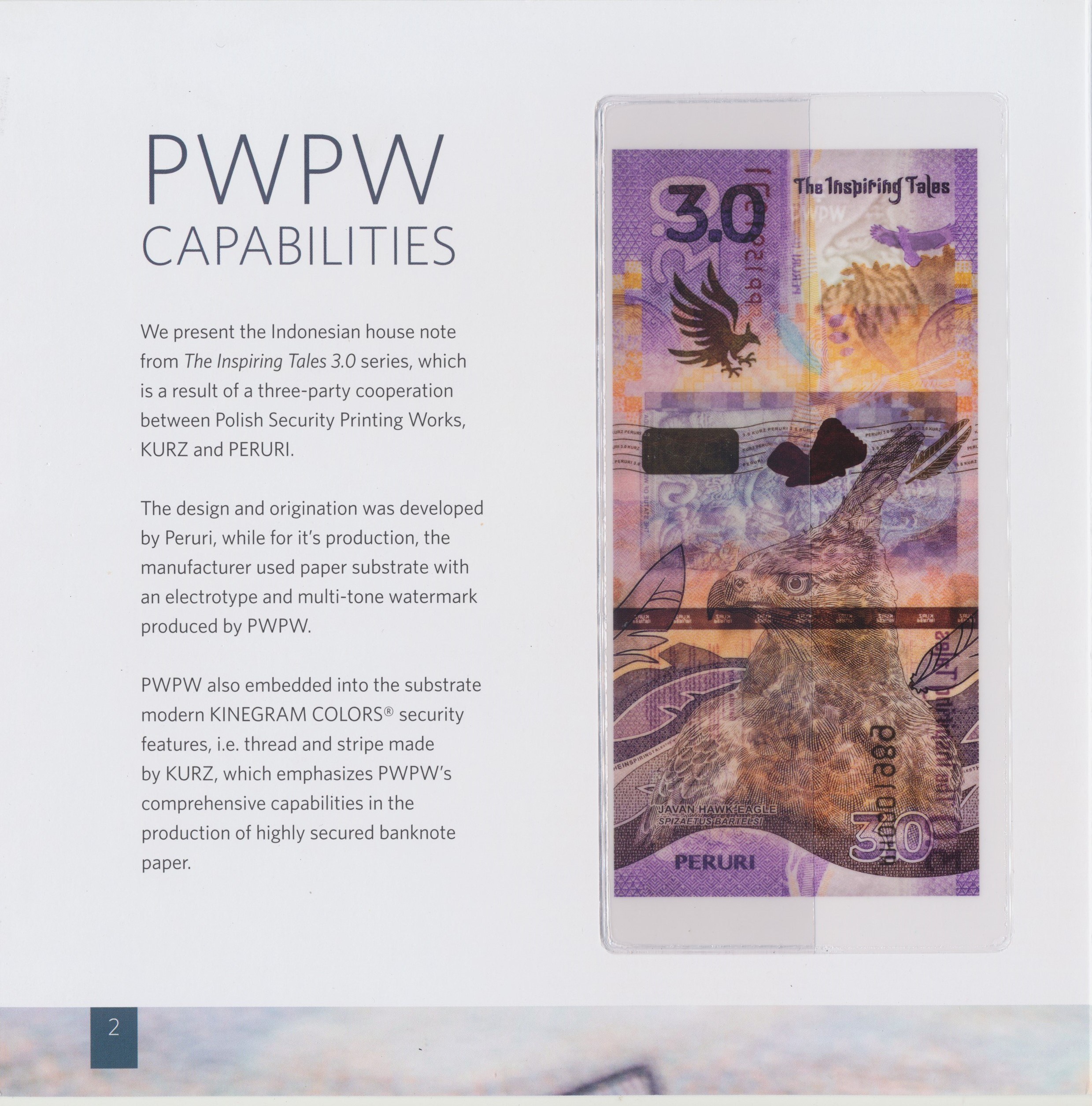 Banknot PWPW wykonany we współpracy z wytwórnią Peruri (Indonezja).