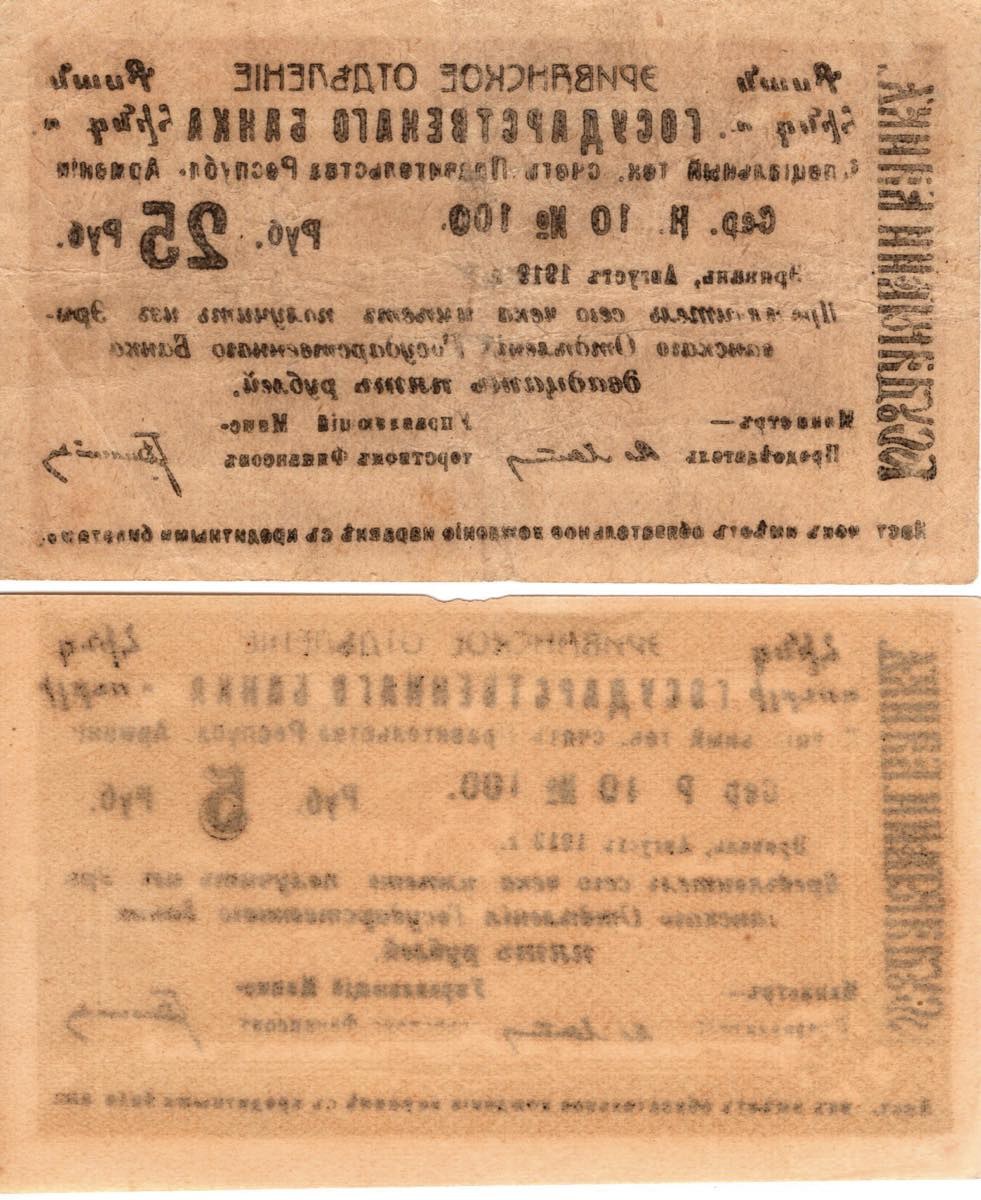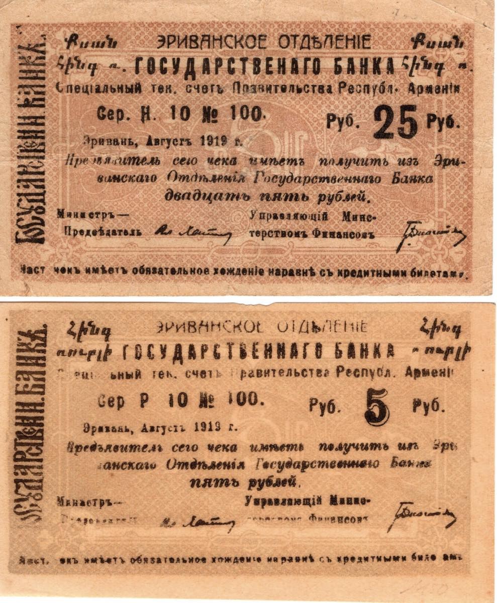 ARMENIA 1919 (1920) 5 Rubles + 25 Rubles, - Pick #14 + #16