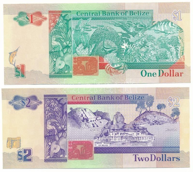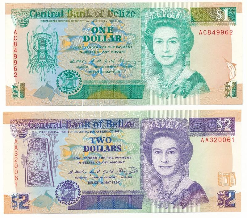 Belize 1990. 1$ + 2$ T:UNC,F szép papír Belize 1990. 1 Dollar + 2 Dollars C:UNC,F fine paper Krause P#51, P#52a