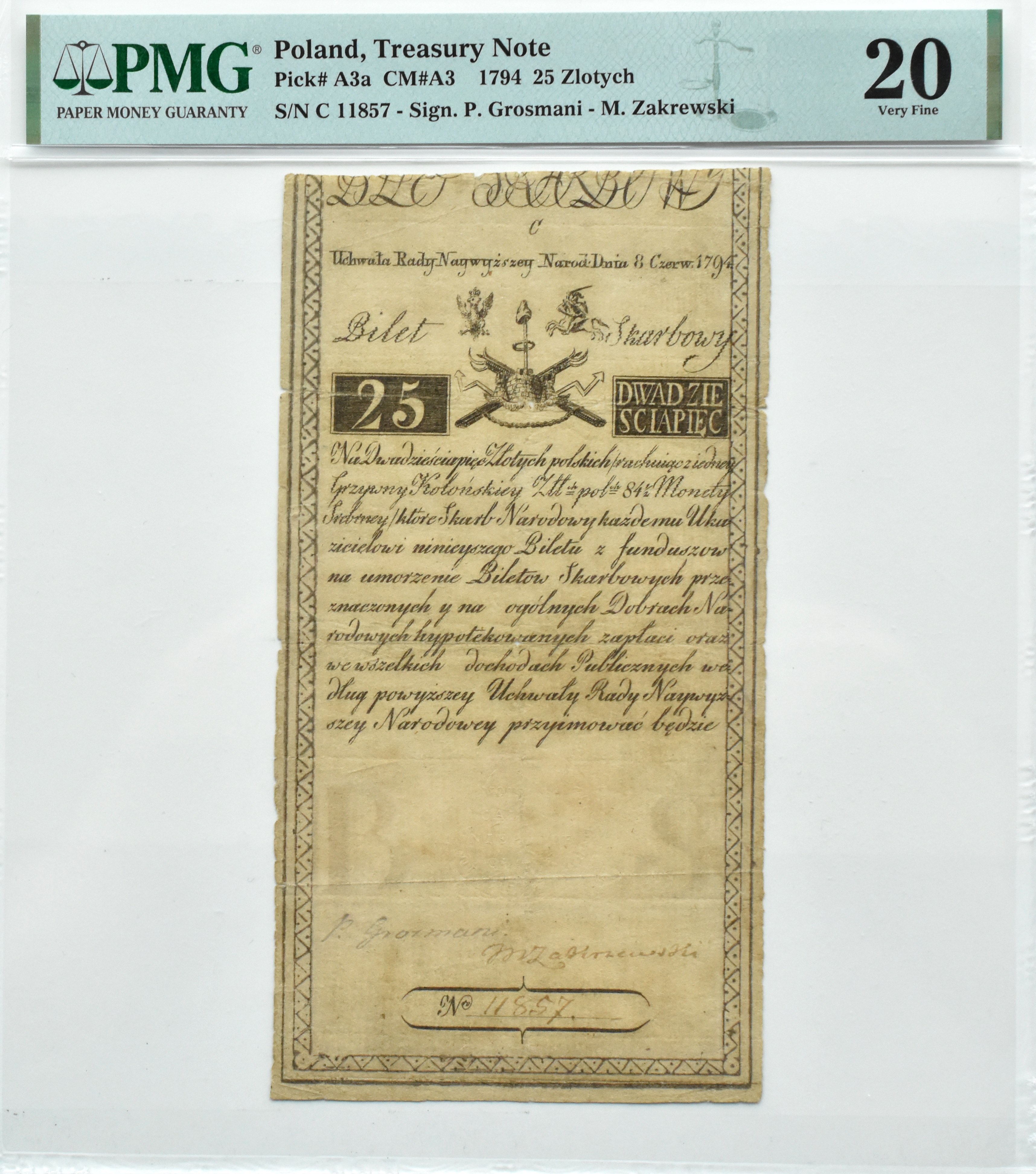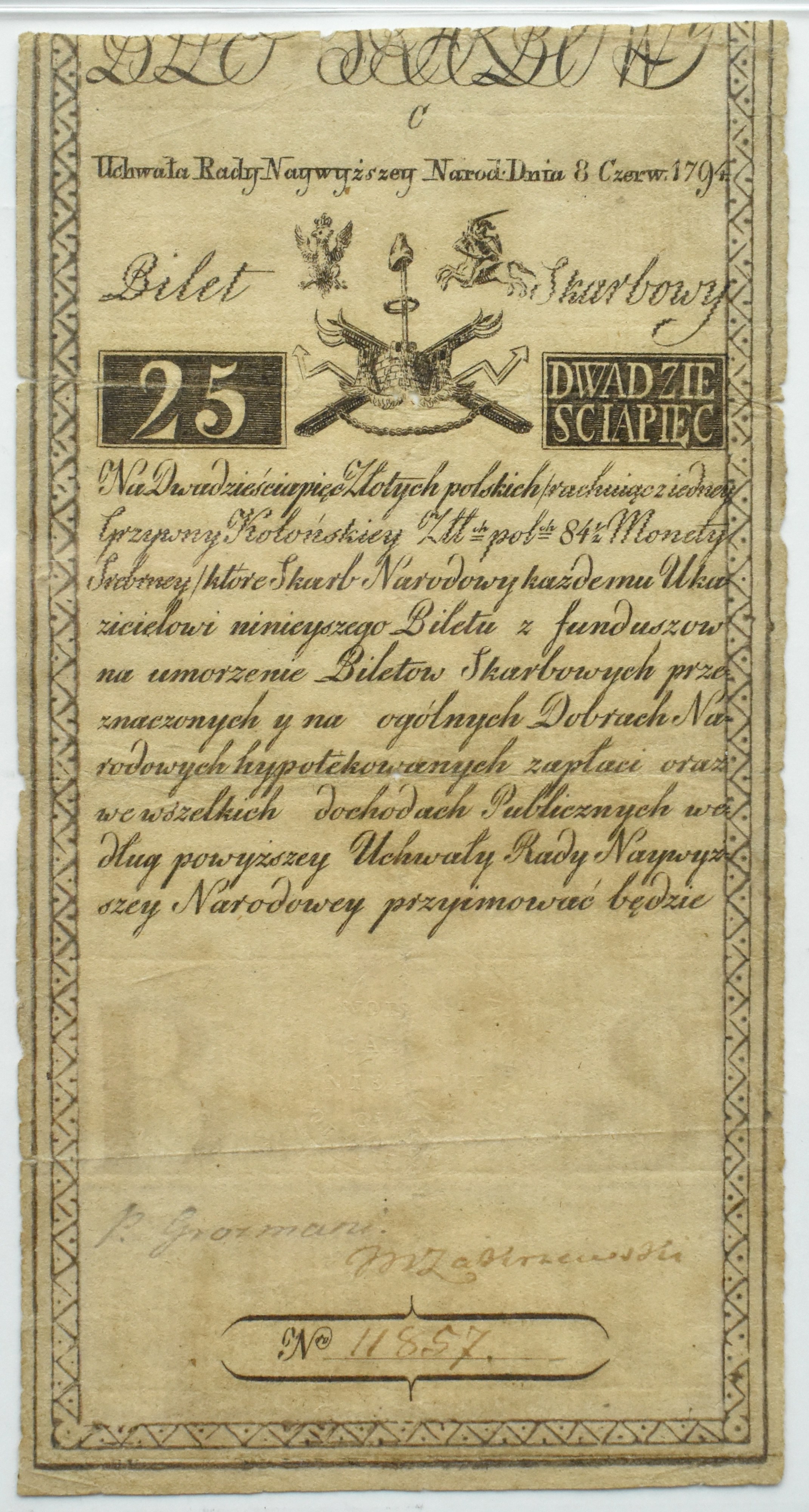 Polska, Insurekcja Kościuszkowska, 25 złotych 1794, seria C numer 11857