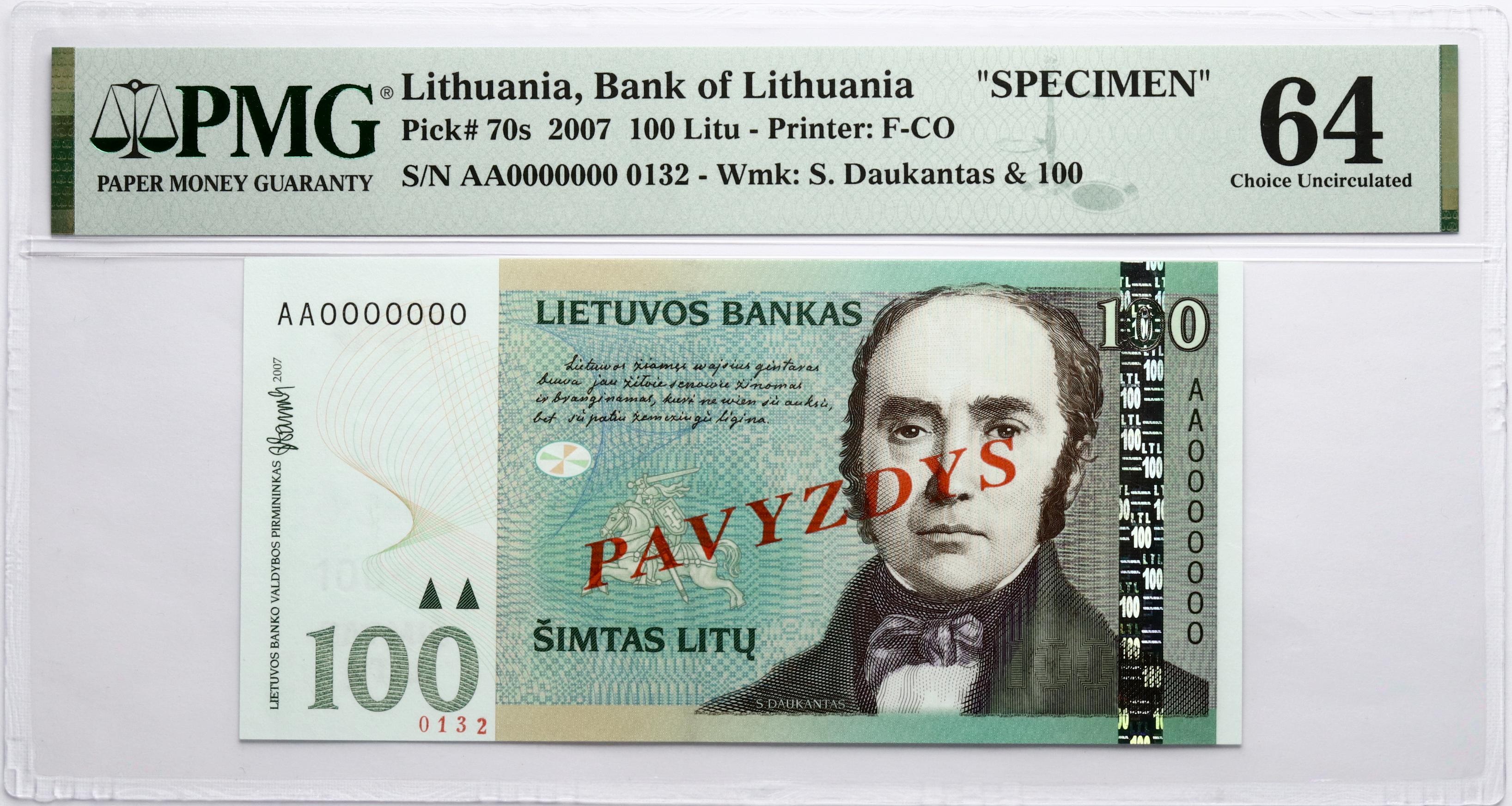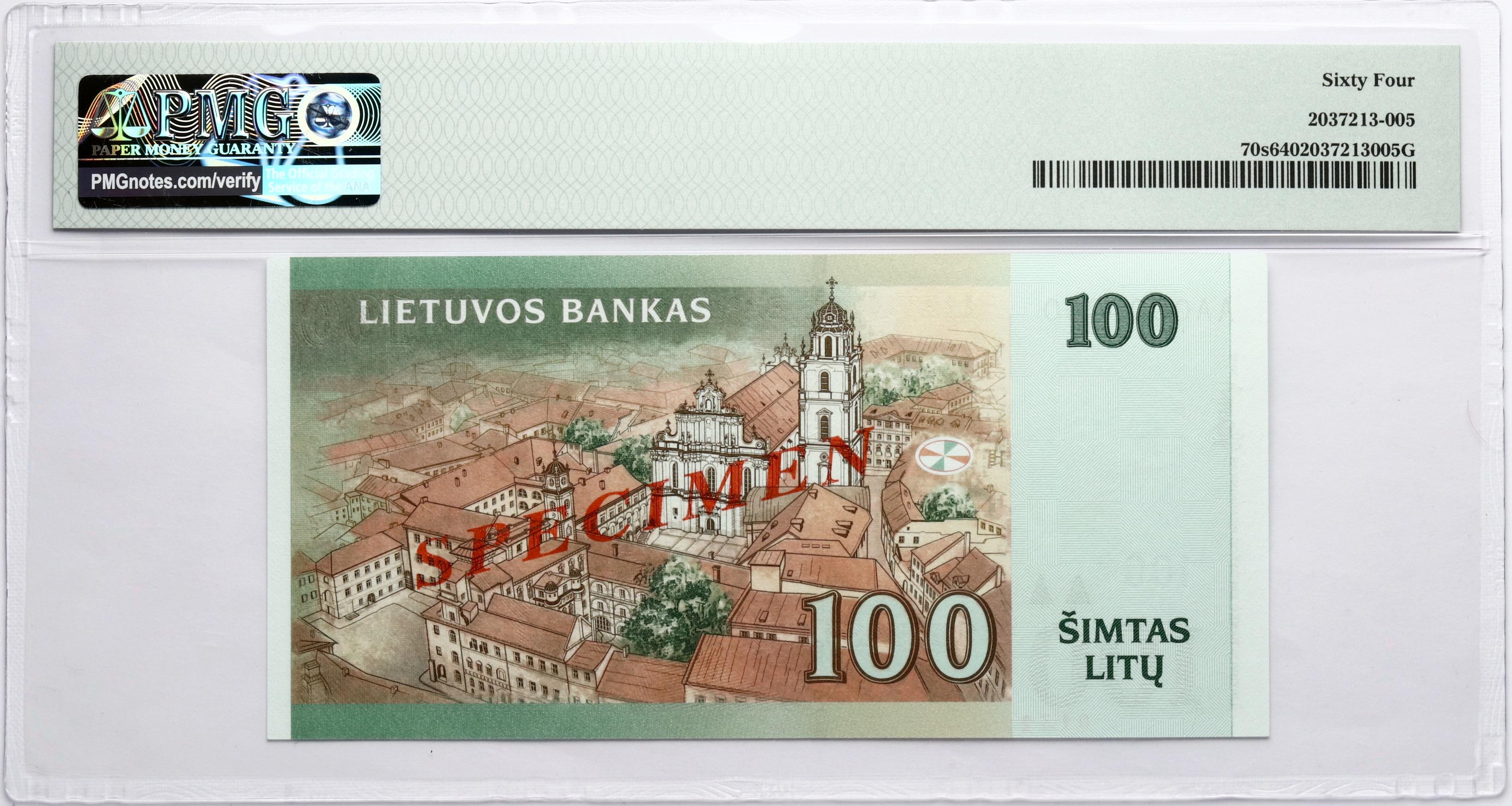 Lithuania 100 Litu 2007 SPECIMEN PMG 64 Choice Unc
