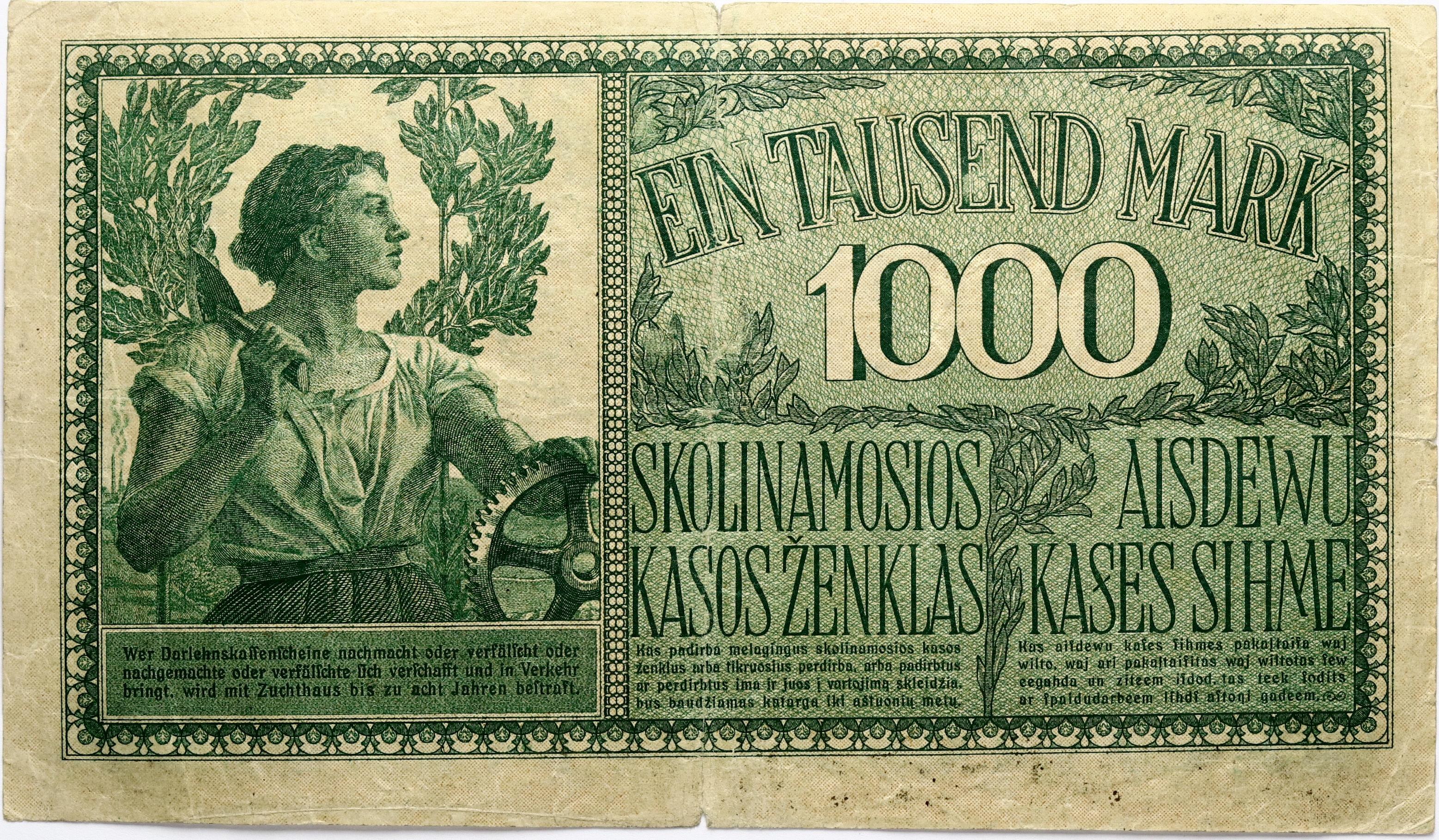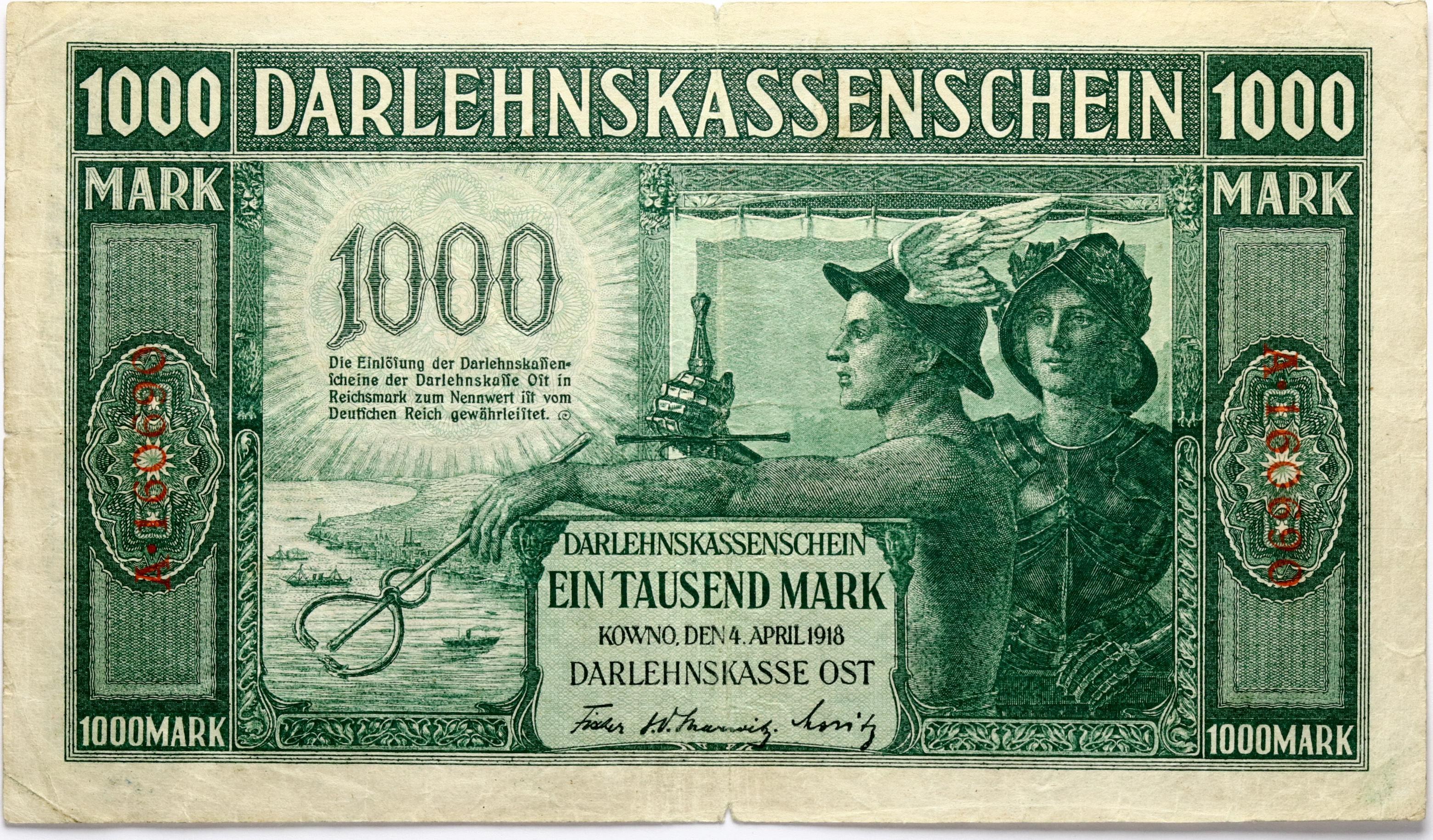 Lithuania. 1000 Mark 1918, Darlehnskasse Ost. Occupation currency. 1918-Apr-04. S/N A.160690. P# R134.