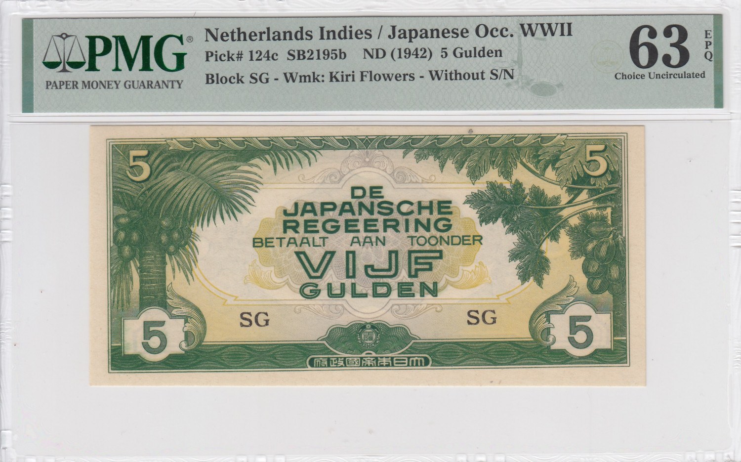 Netherlands Indies 5 Gulden 1942 - PMG 63 EPQ Choice Uncirculated