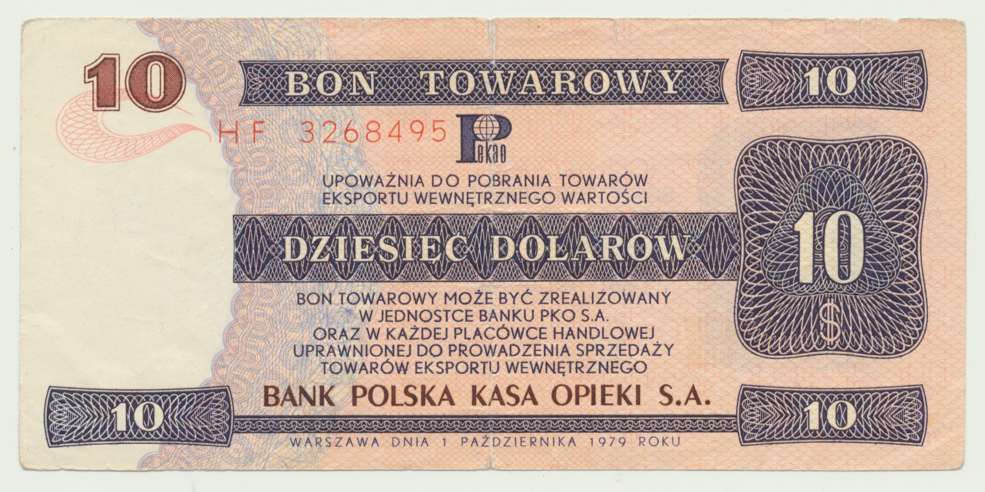 Pewex Bon Towarowy, 10 dolarów 1979, ser. HF