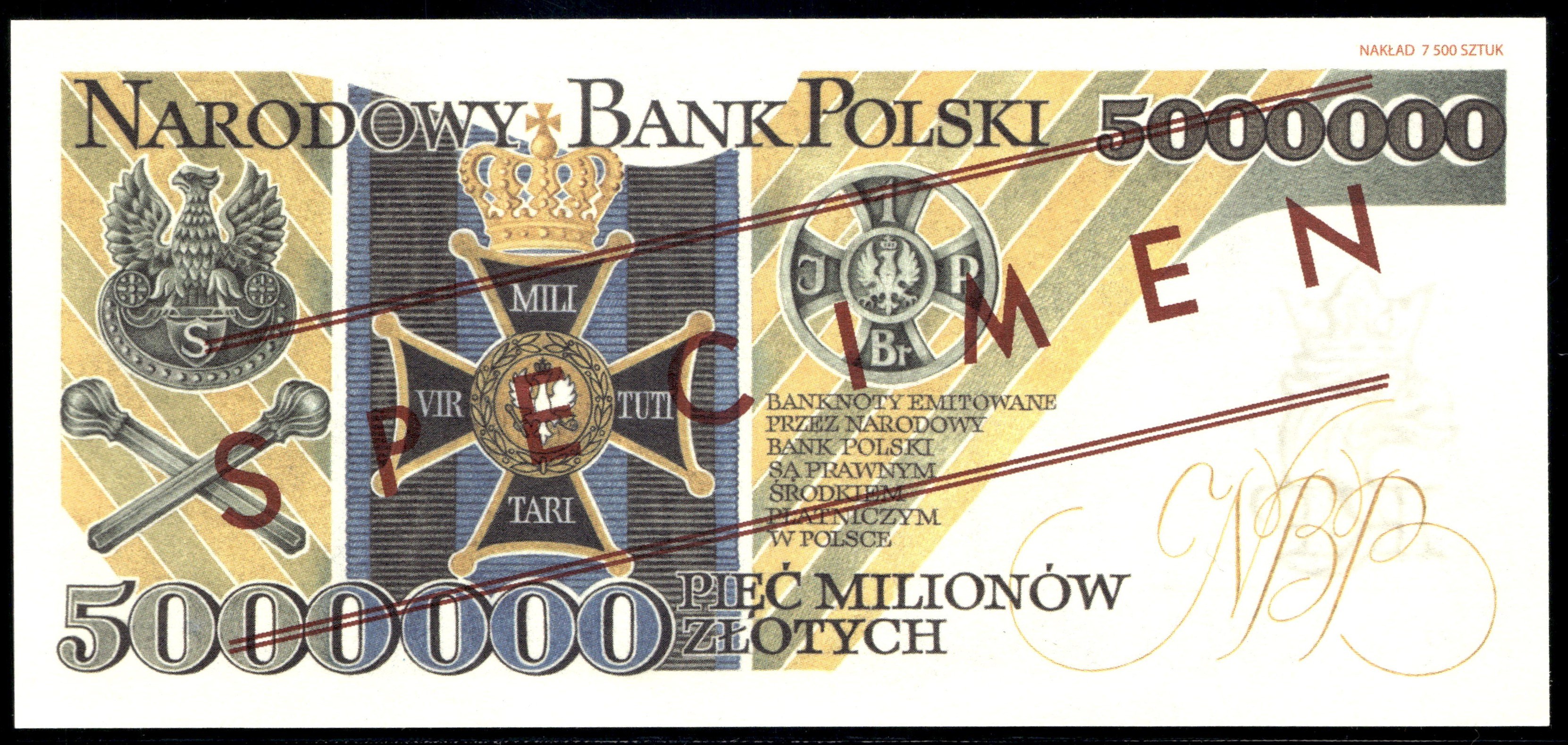 Poland. 1995 5 Million Zlotych Prefix YA WZOR