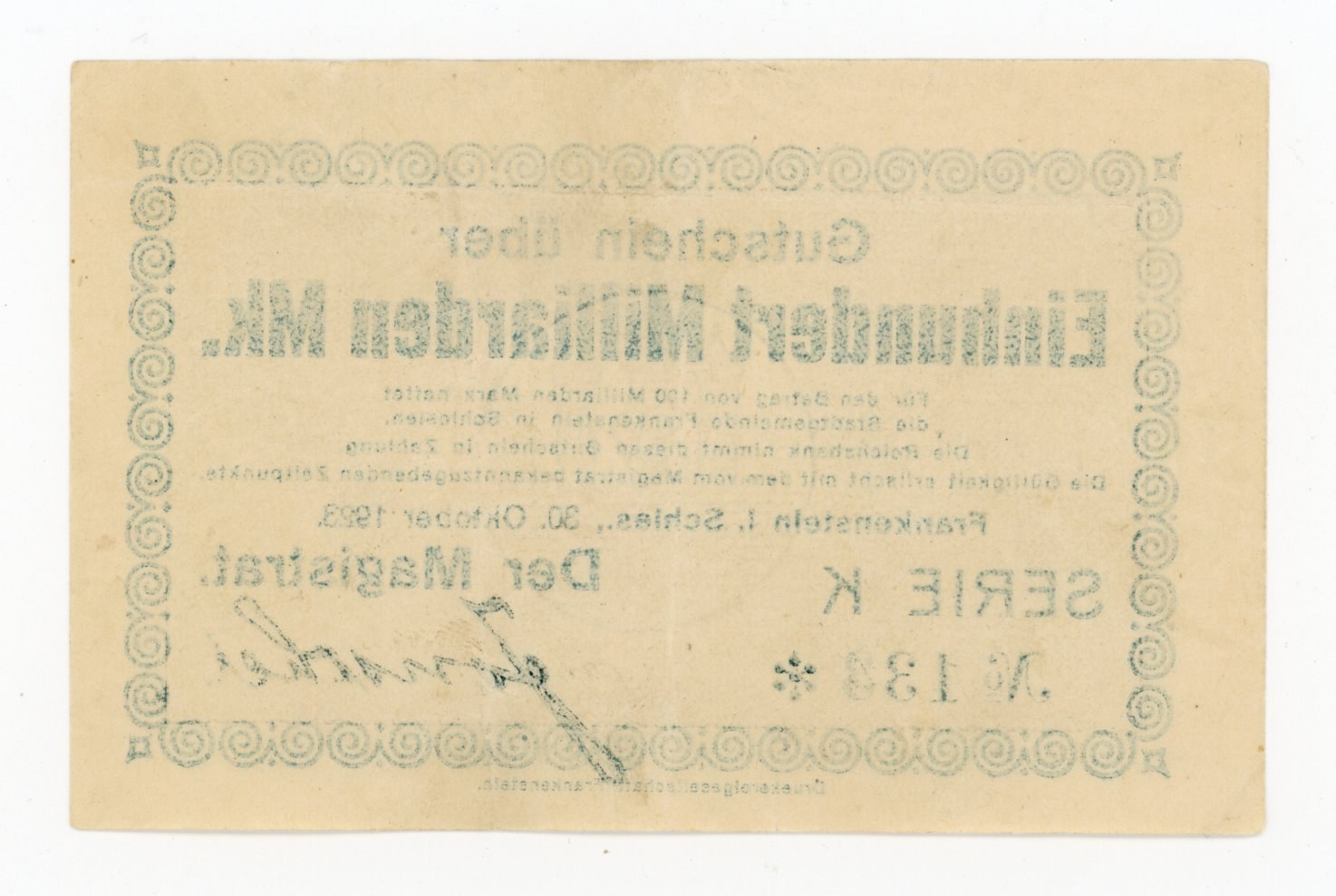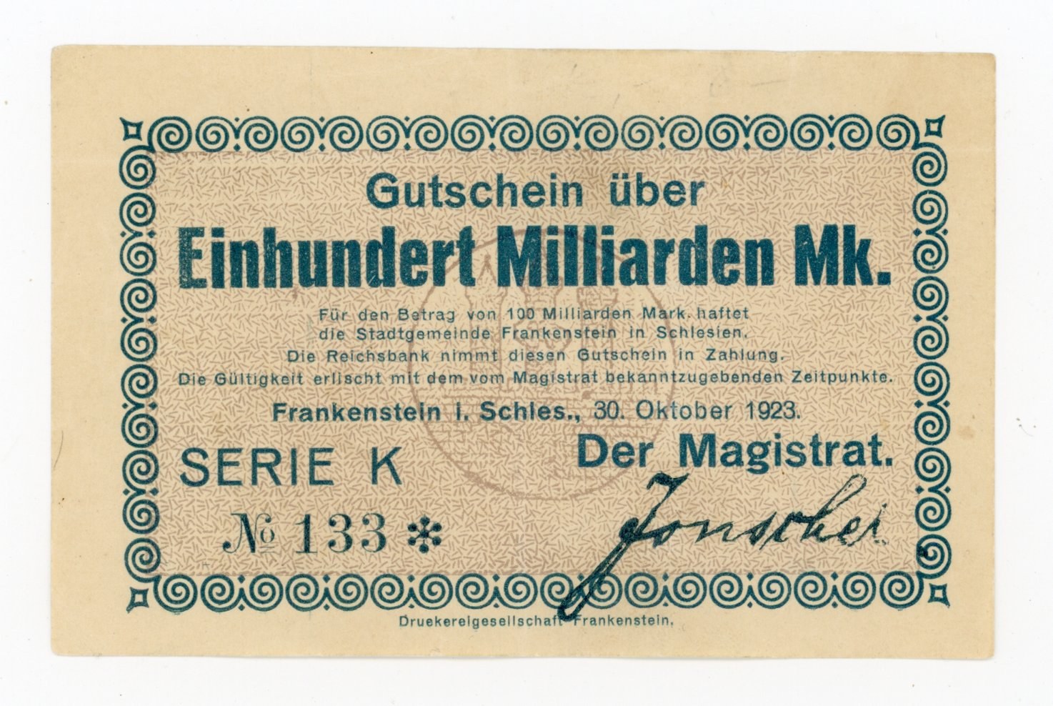 Ząbkowice Śląskie/ Frankenstein; Stadt; 30.10.1925; 100 Mrd; Seria K