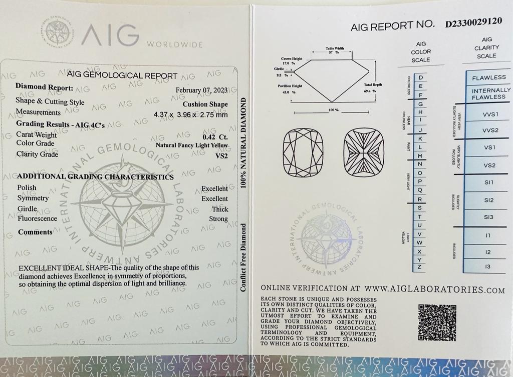 0.42 CT FANCY LIGHT YELLOW POLISHED NATURAL DIAMOND - VS2 - UD30121-1
