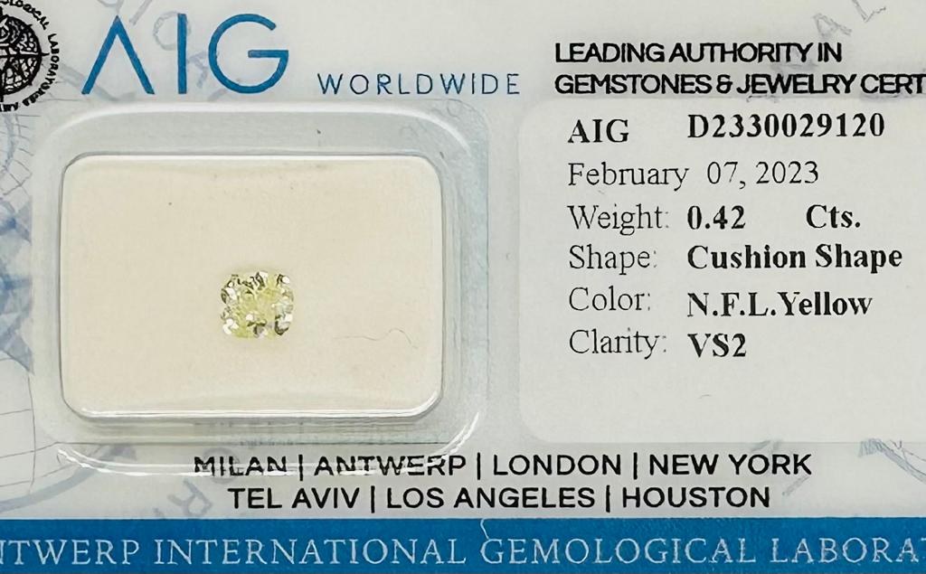 0.42 CARAT NATURAL POLISHED LIGHT YELLOW DIAMOND - VS2 CLARITY - UD30121-1 - AUCTION COMMISSION 25%