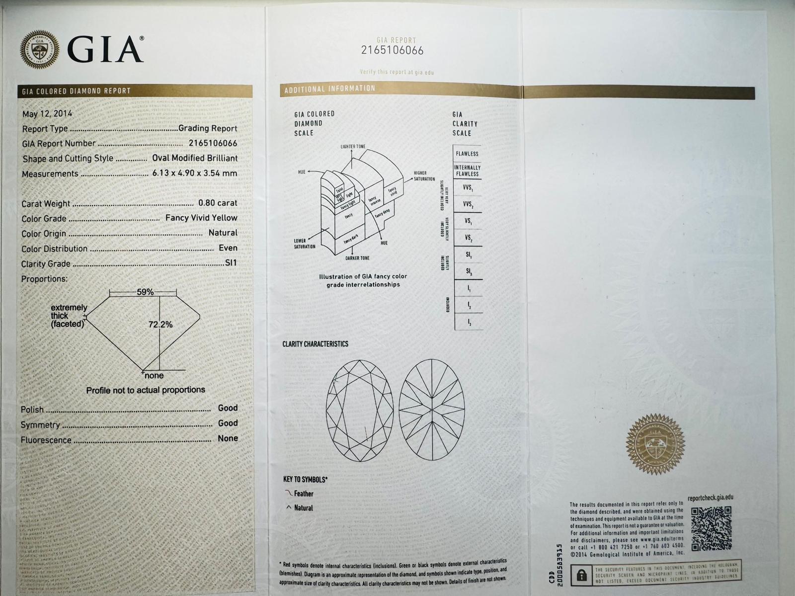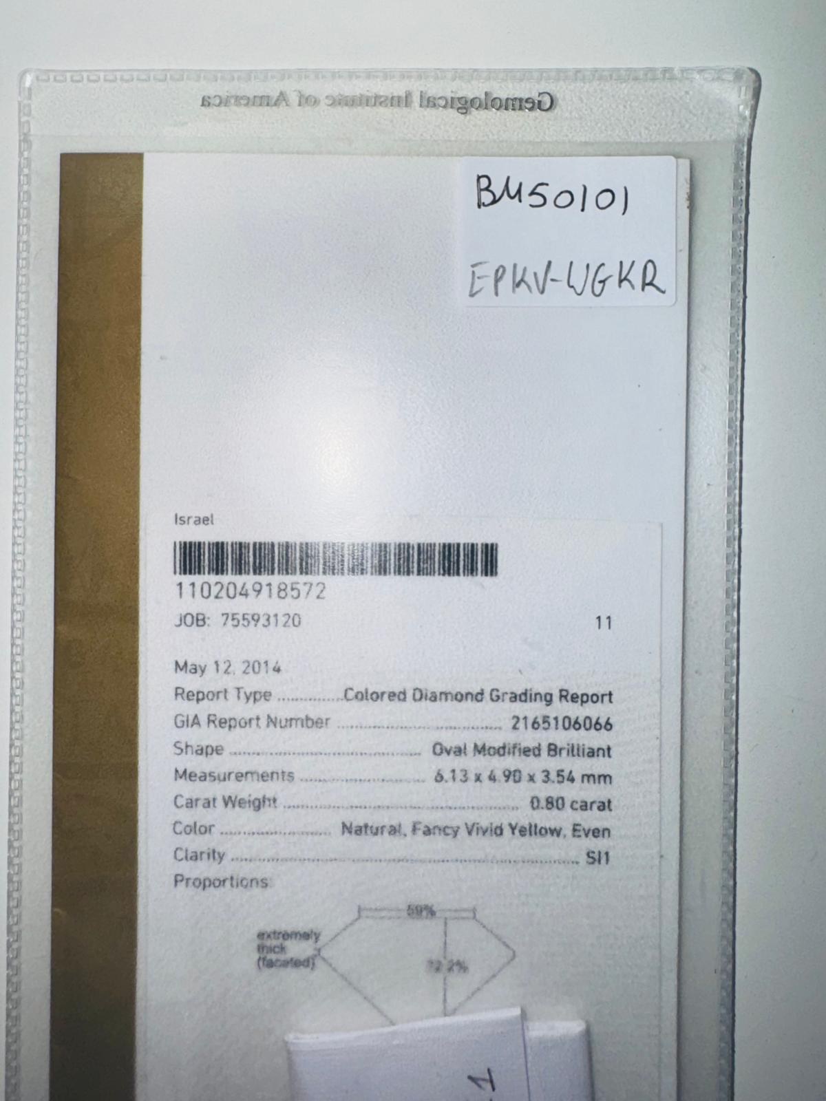 0.8 NATURAL POLISHED FANCY VIVID YELLOW DIAMOND - GEMMOLOGICAL CERTIFICATE - SI1 - GIA - BM50101