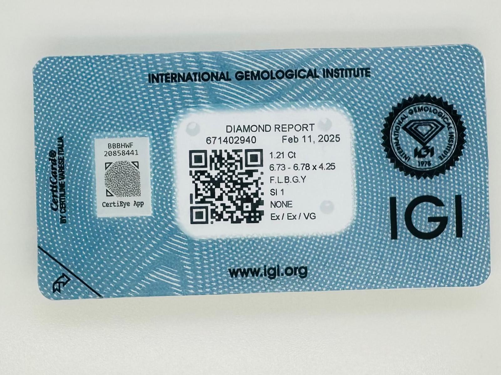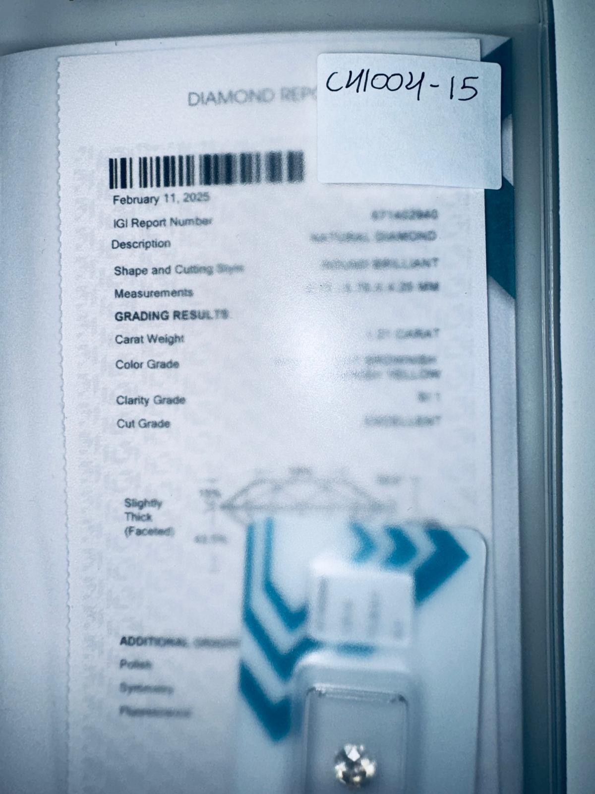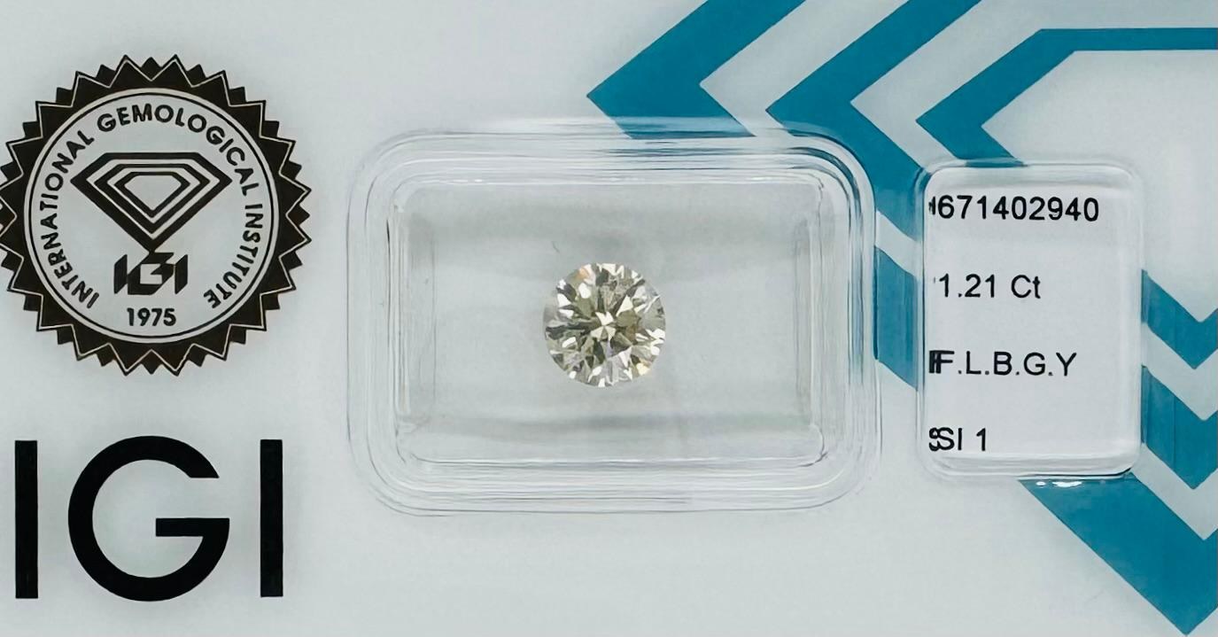 1.21 NATURAL POLISHED DIAMOND - NATURAL FANCY GREENISH BROWN YELLOW COLOR - SI1 CLARITY - IGI CERTIFICATE - C41004-15 - AUCTION COMMISSION 25%