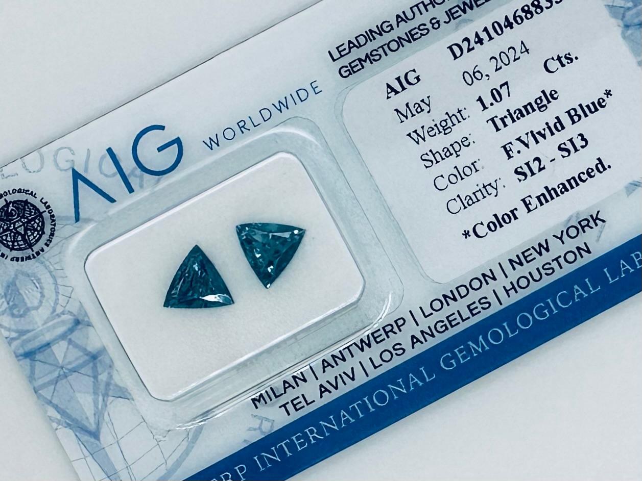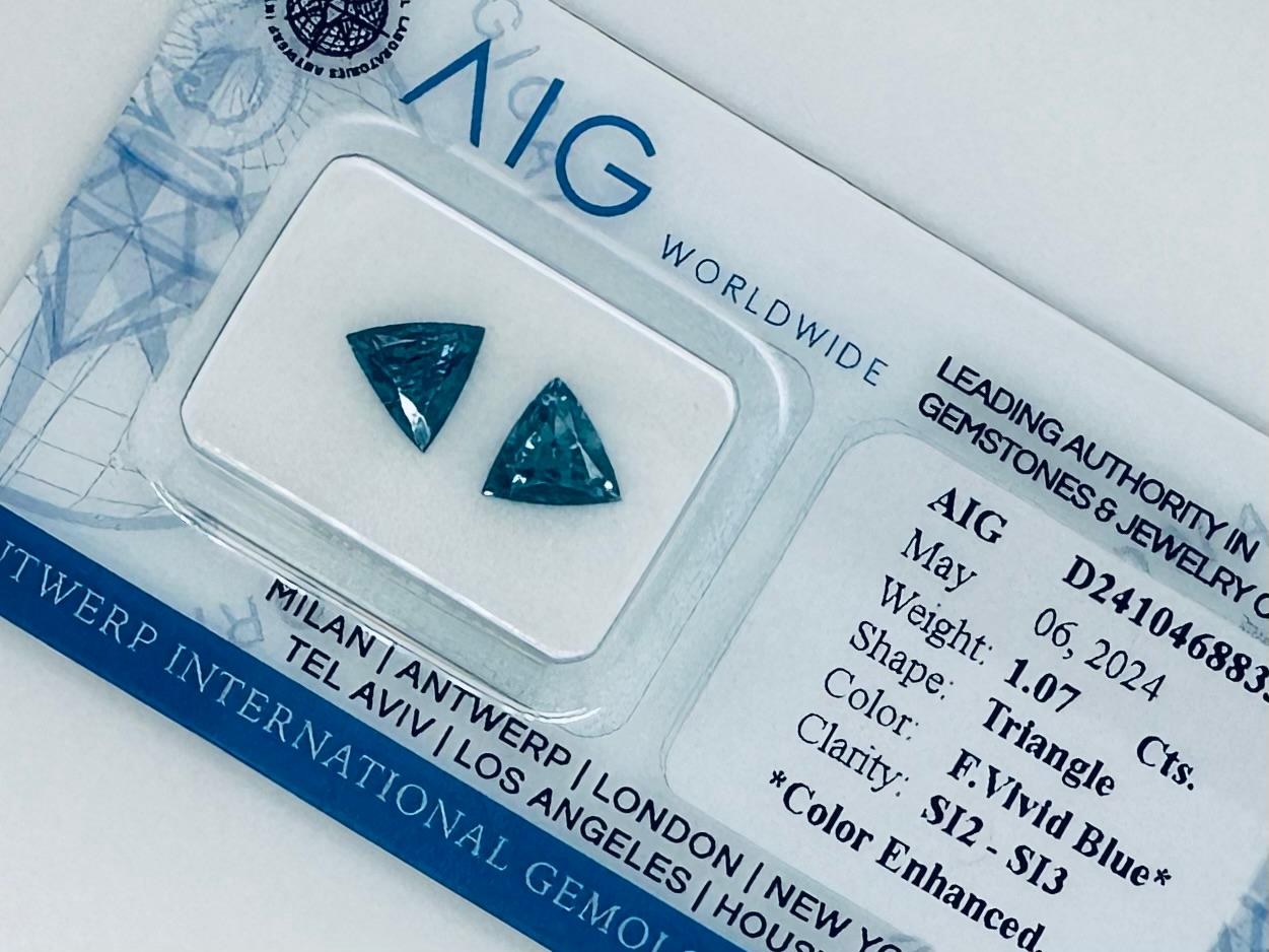 2 NATURAL POLISHED DIAMONDS 1.07 FANCY INTENSE BLUE* -SI1-2 - AIG - C31210-6