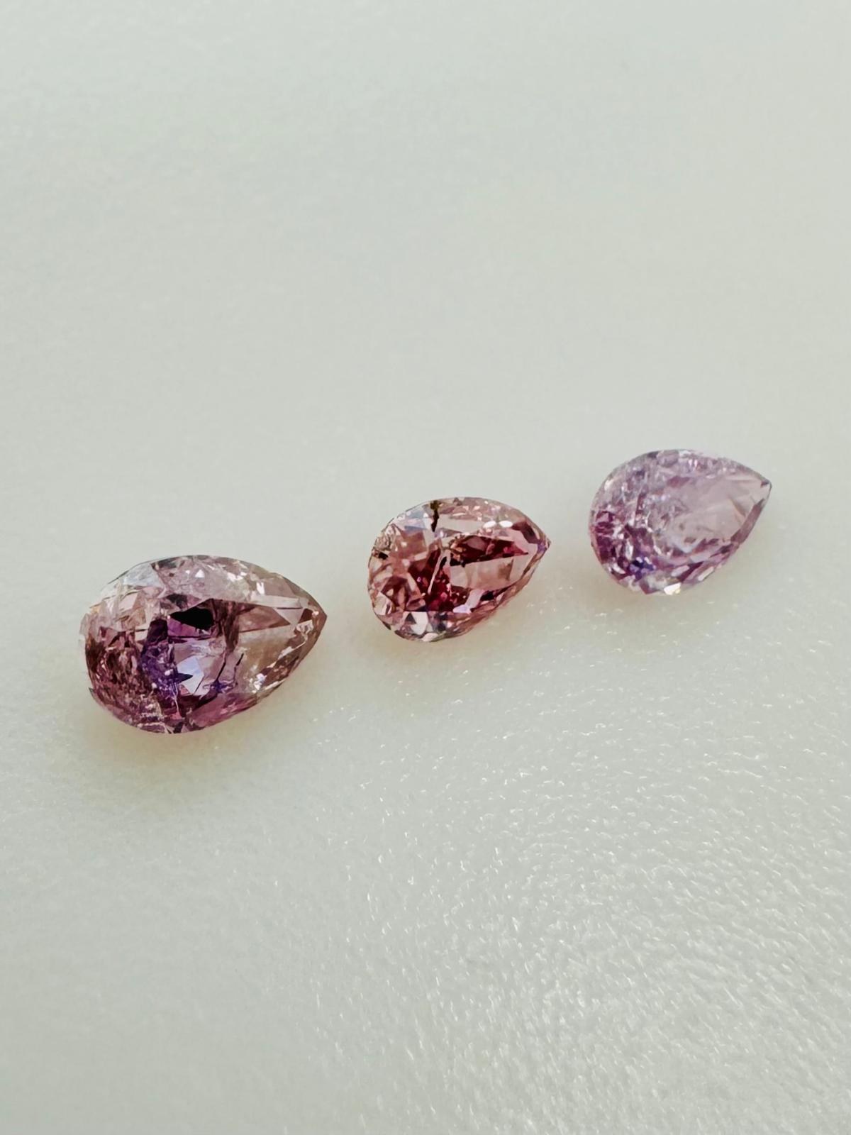3 NATURAL POLISHED DIAMONDS, 0.24 CARATS, DEEP PINK