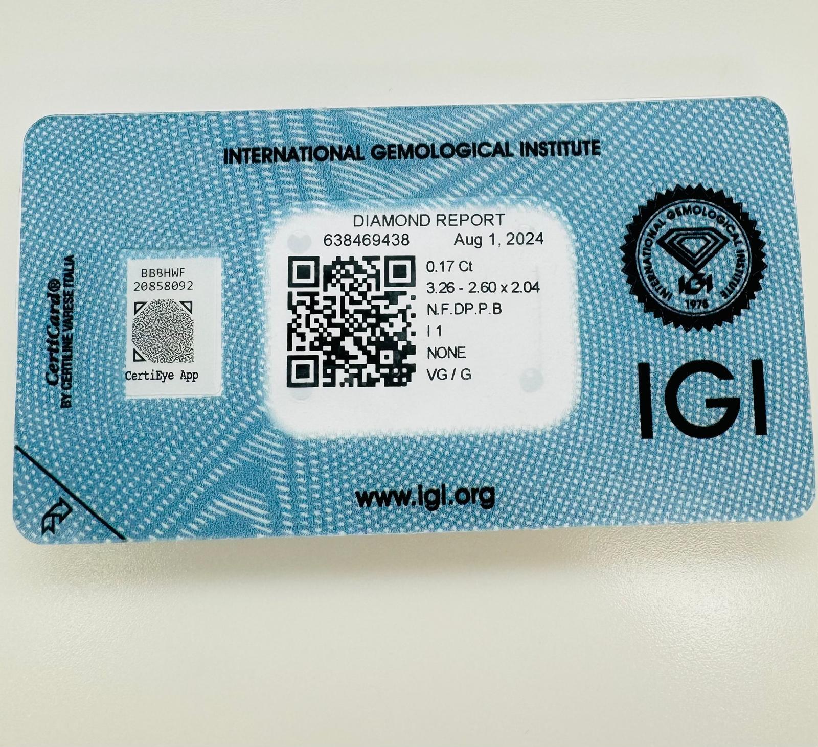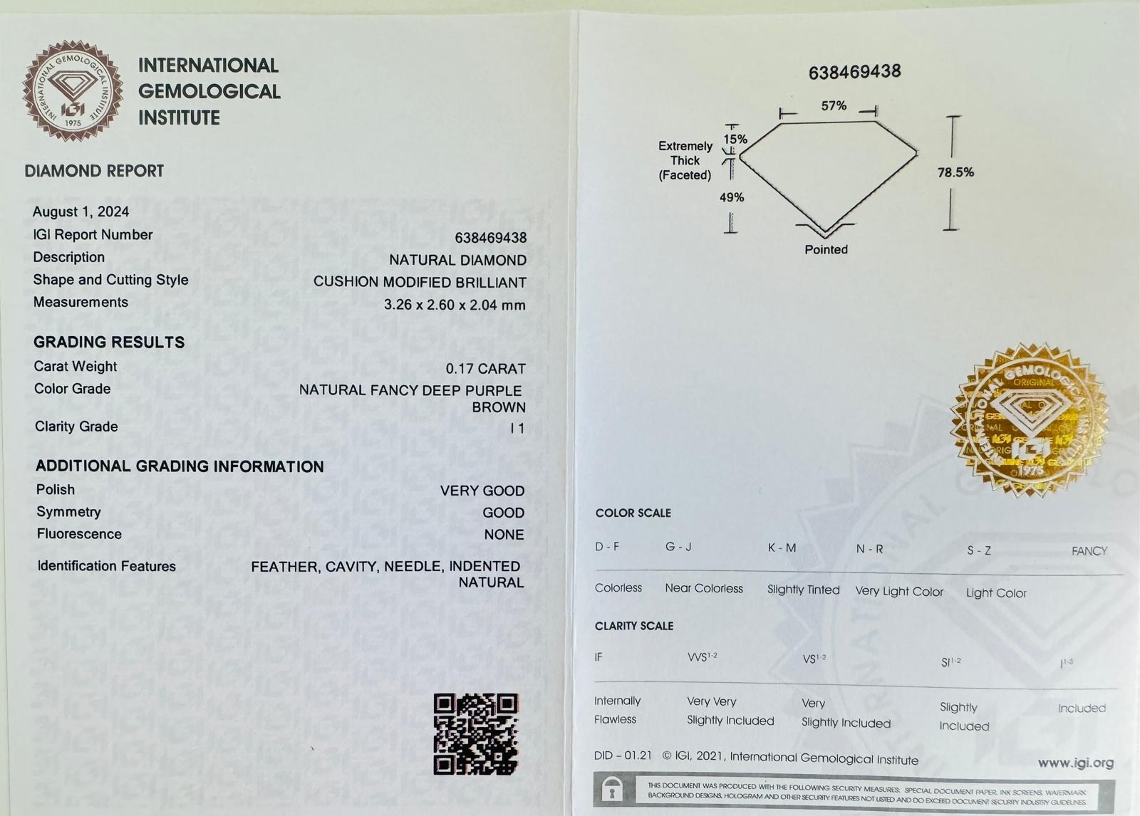 0.17 CARAT NATURAL POLISHED DIAMOND INTENSE BROWN PURPLE - I1 CLARITY - IGI CERTIFICATE - EY40701-2 - AUCTION COMMISSION 25%