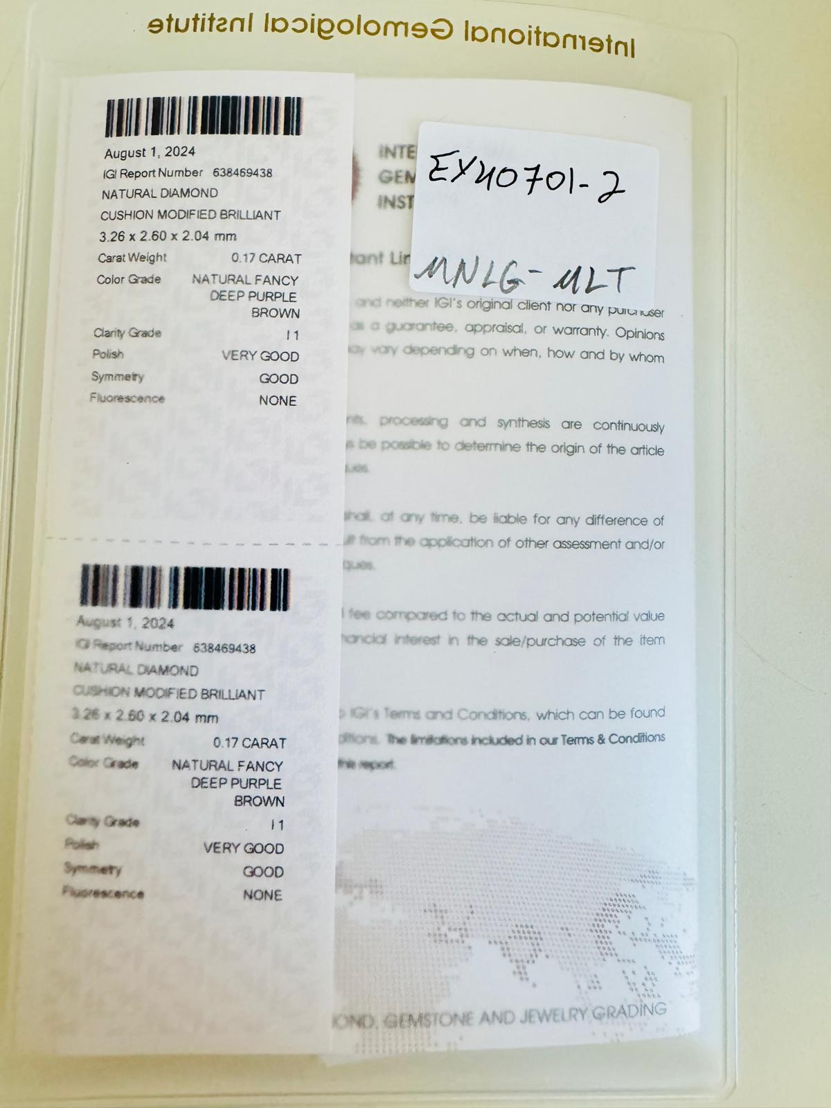 DIAMOND NATURAL POLISHED 0.17 NATURAL FANCY PURPLE BROWN INTENSE - I1 - IGI - EY40701-2