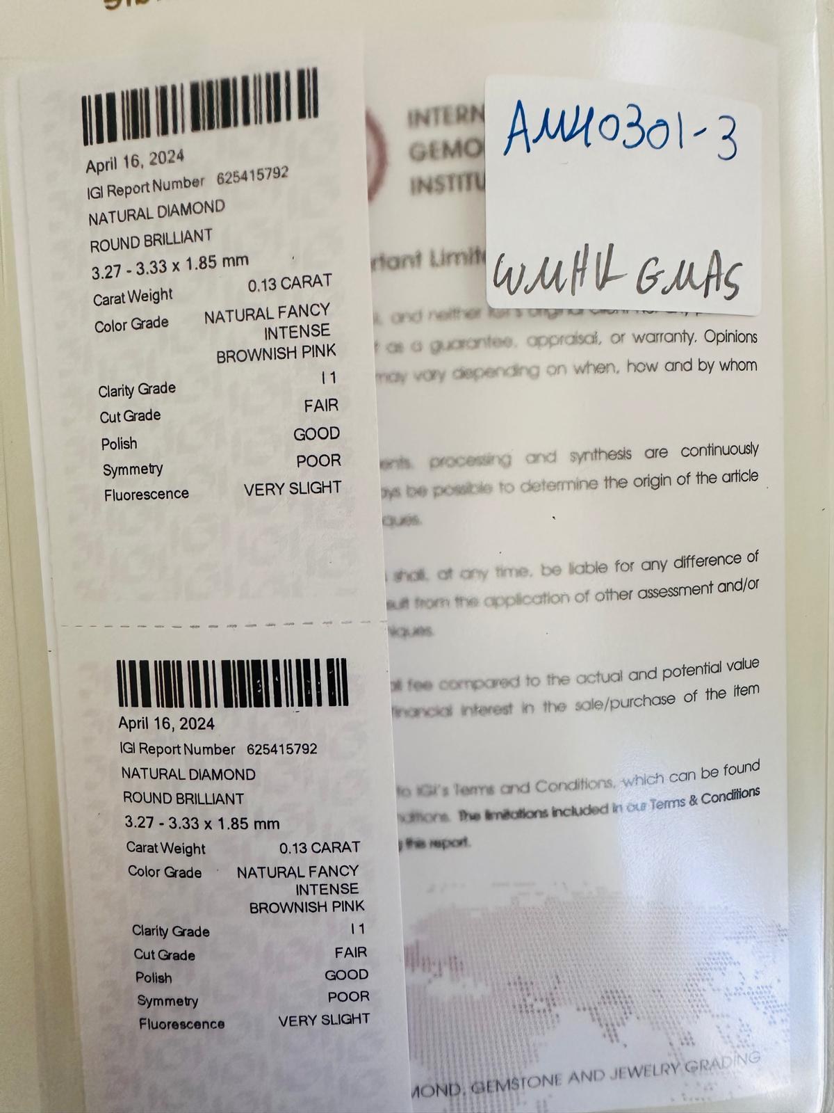 0.13 FANCY DEEP BROWNISH PINK NATURAL POLISHED DIAMOND - I1 CLARITY - IGI CERTIFICATE - AM40301-3 - AUCTION COMMISSION 25%