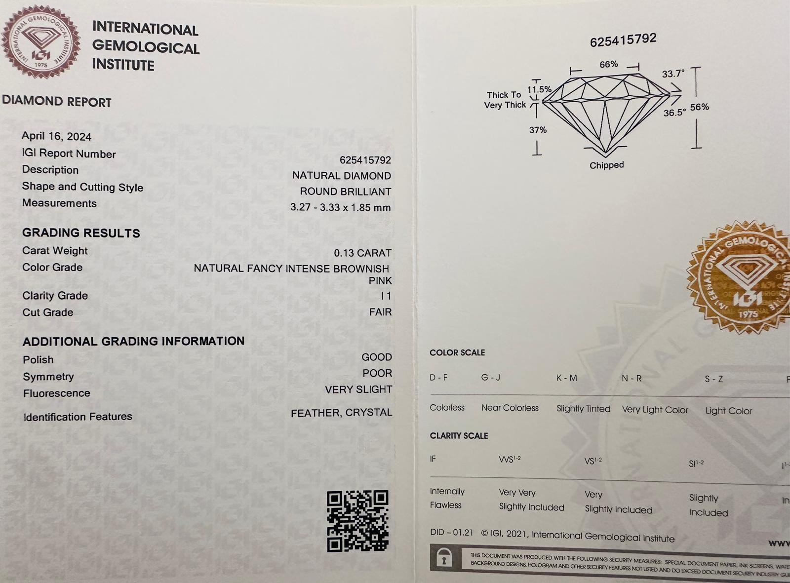 NATURAL POLISHED DIAMOND 0.13 FANCY DEEP BROWN PINK - I1 - IGI - AM40301-3