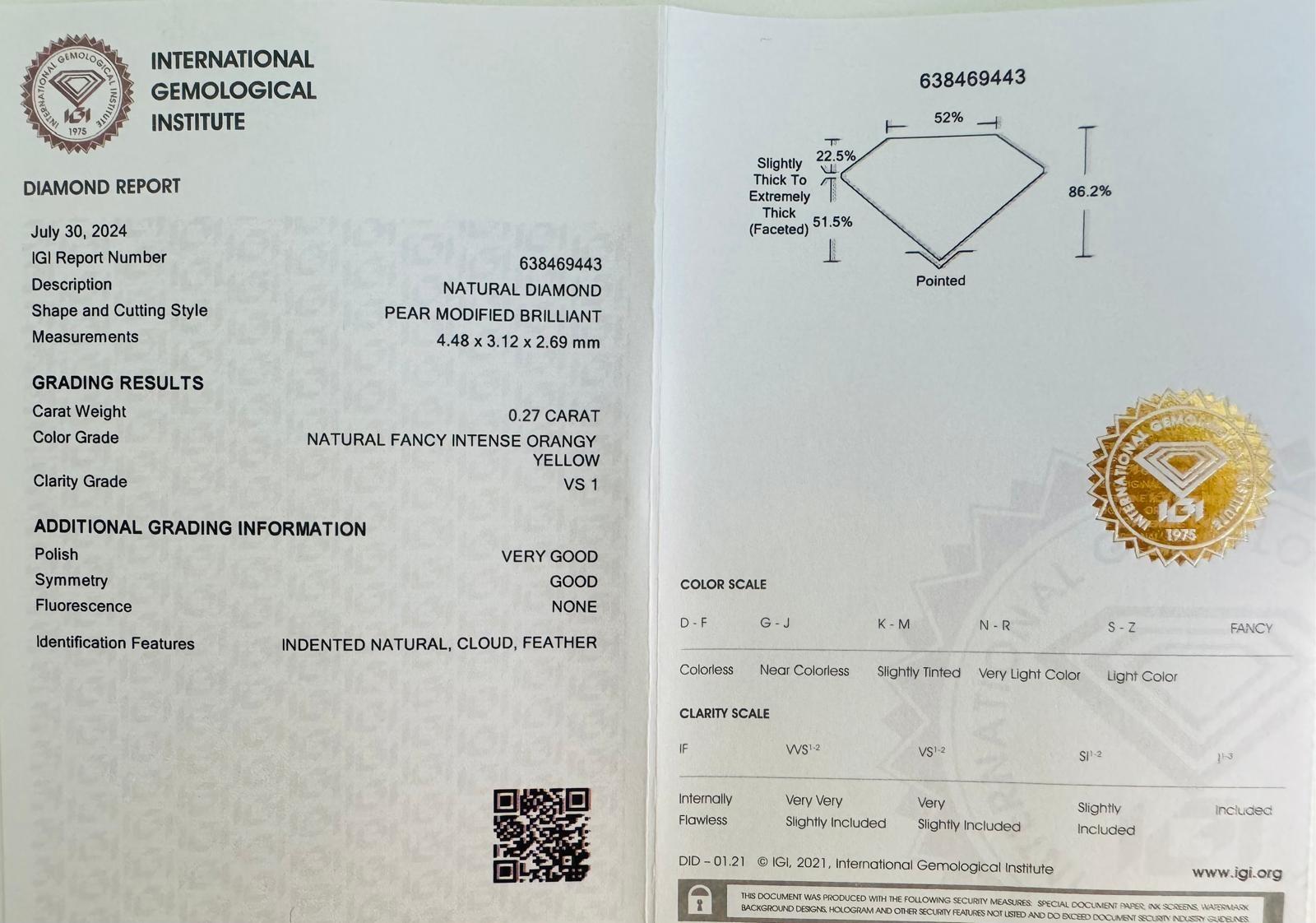 NATURAL POLISHED DIAMOND 0.27 FANCY ORANGE YELLOW - VS1 - IGI - EY40701 - 7