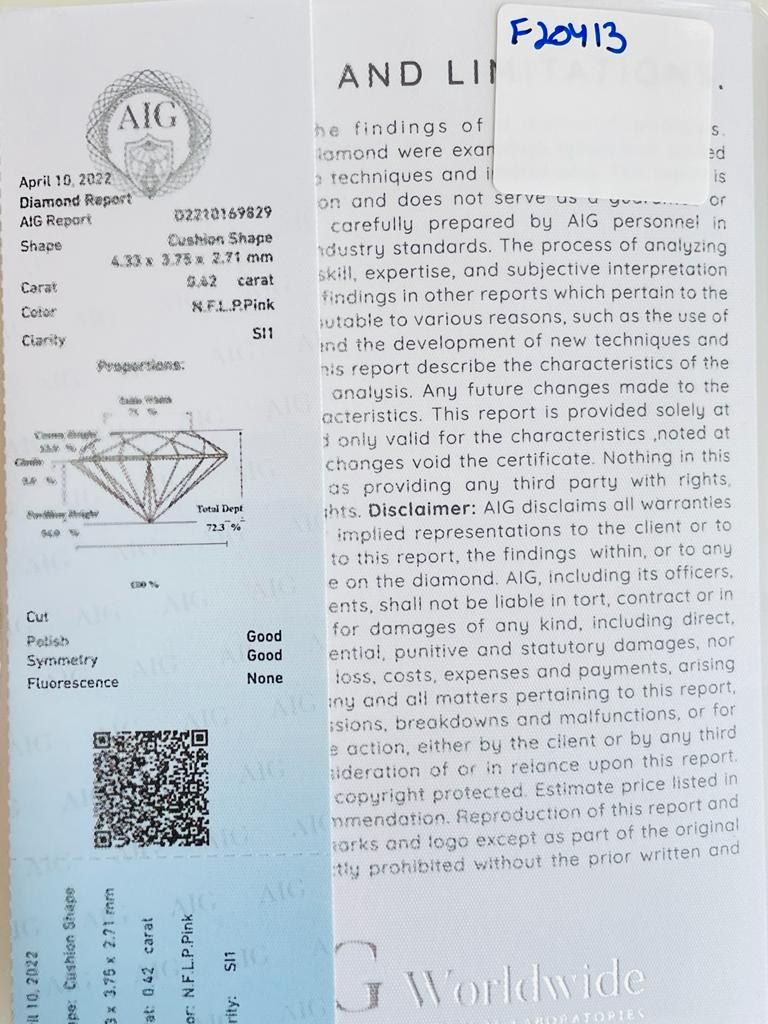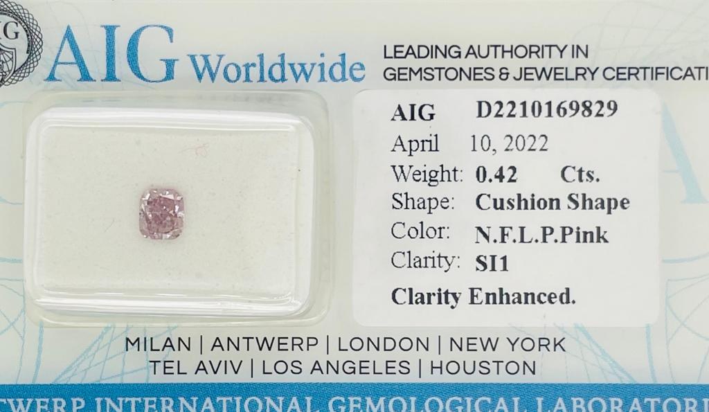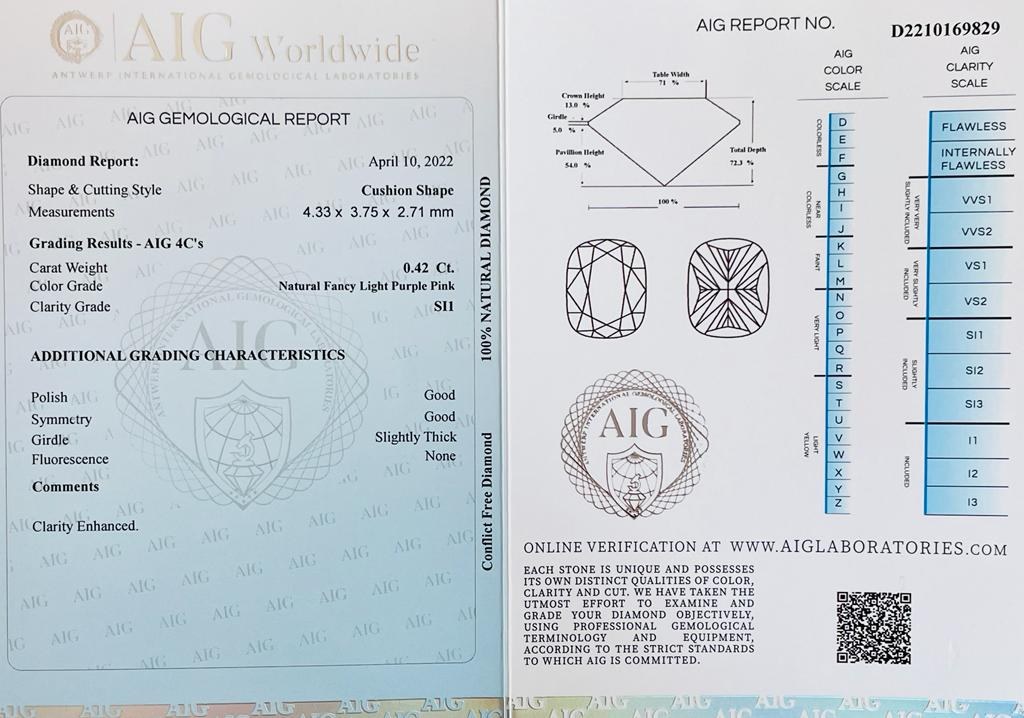 0.42 NATURAL POLISHED DIAMOND - NATURAL FANCY LIGHT PINK PURPLE COLOR - SI1 CLARITY - AIG CERTIFICATE - F20413 - AUCTION COMMISSION 25%