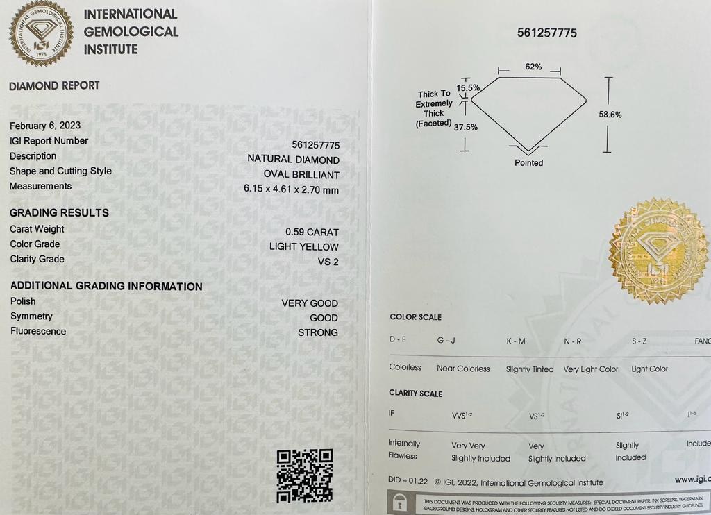 POLISHED NATURAL DIAMOND 0.59 LIGHT YELLOW -VS2 - IGI - UD30120-1