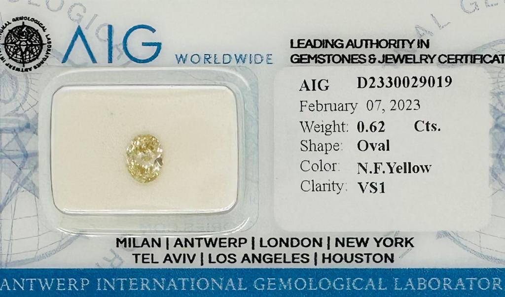 0.59 NATURAL POLISHED DIAMOND - LIGHT YELLOW COLOR - VS2 CLARITY - IGI CERTIFICATE - UD30120-1 - AUCTION COMMISSION 25%