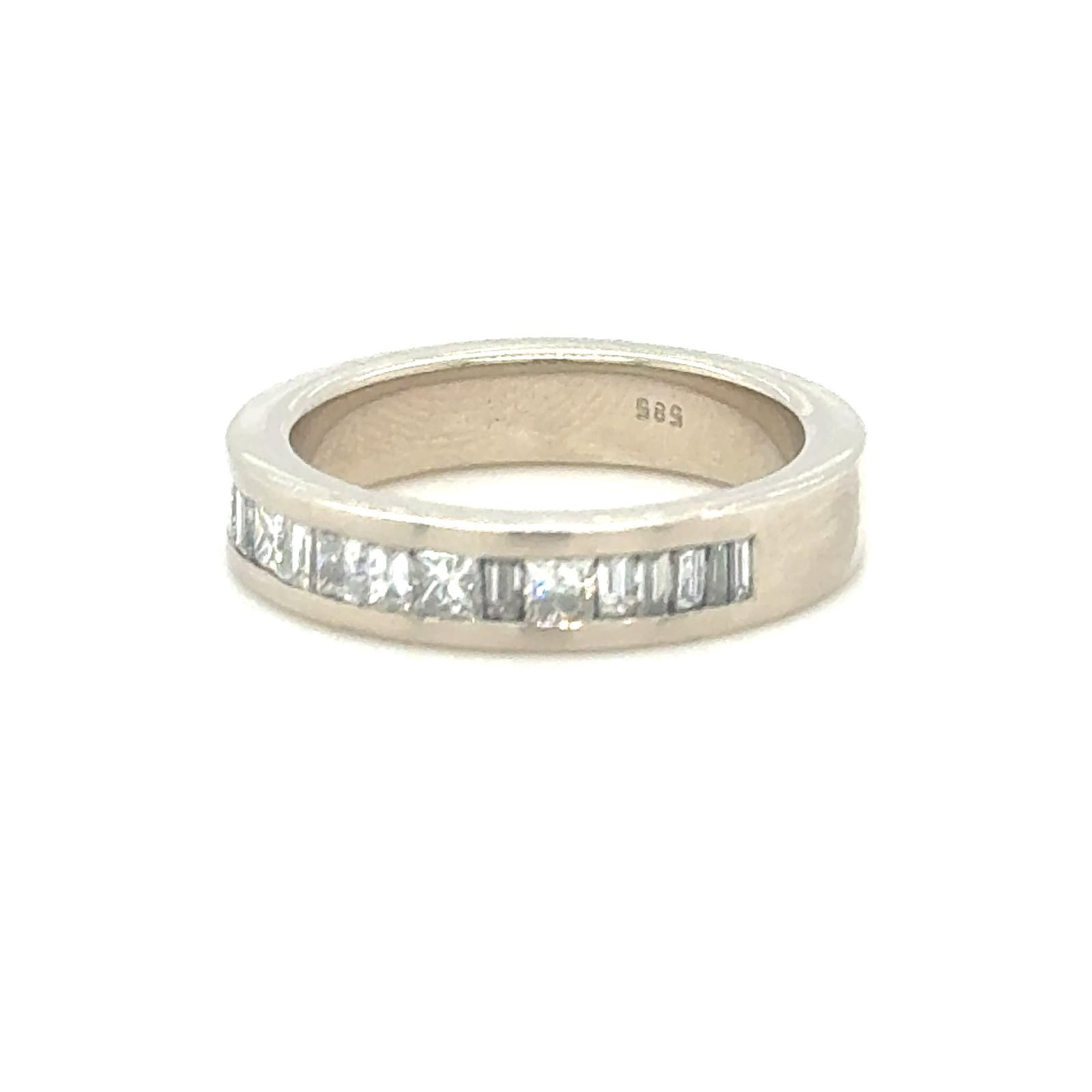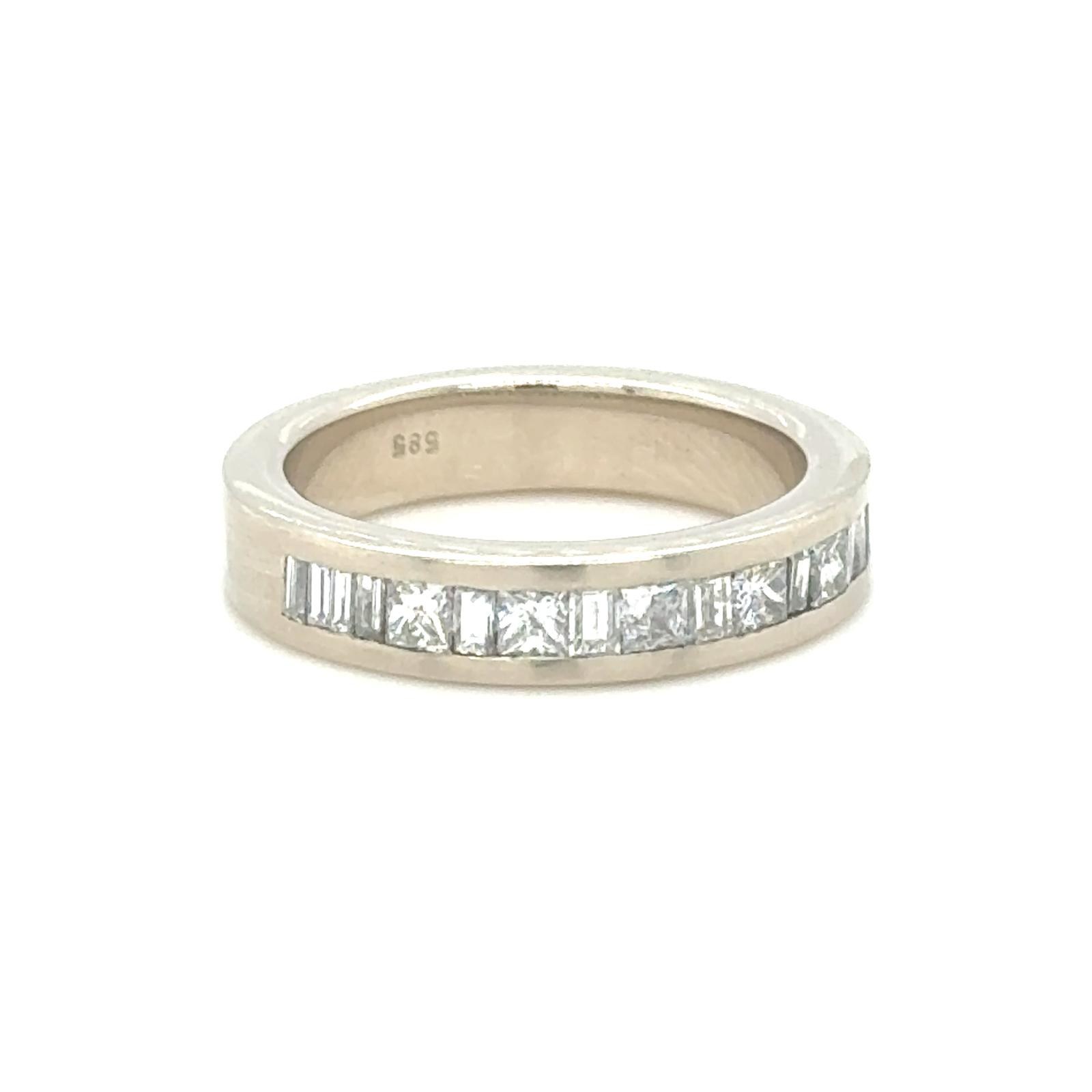 14K WHITE GOLD RING - 6.48 GR WITH NATURAL PRINCESS CUT DIAMONDS COLOR H-I CLARITY VS 5 - 0.30 CT + DIAMONDS COLOR G-H CLARITY VS-SI1 - 13 - 0.60 CT SIZE - 7 GEMMOLOGICAL CERTIFICATE MAROZ DIAMONDS LTD MEMBER ISRAEL DIAMOND EXCHANGE - DH-R974 - AUCTION COMMISSION 25%