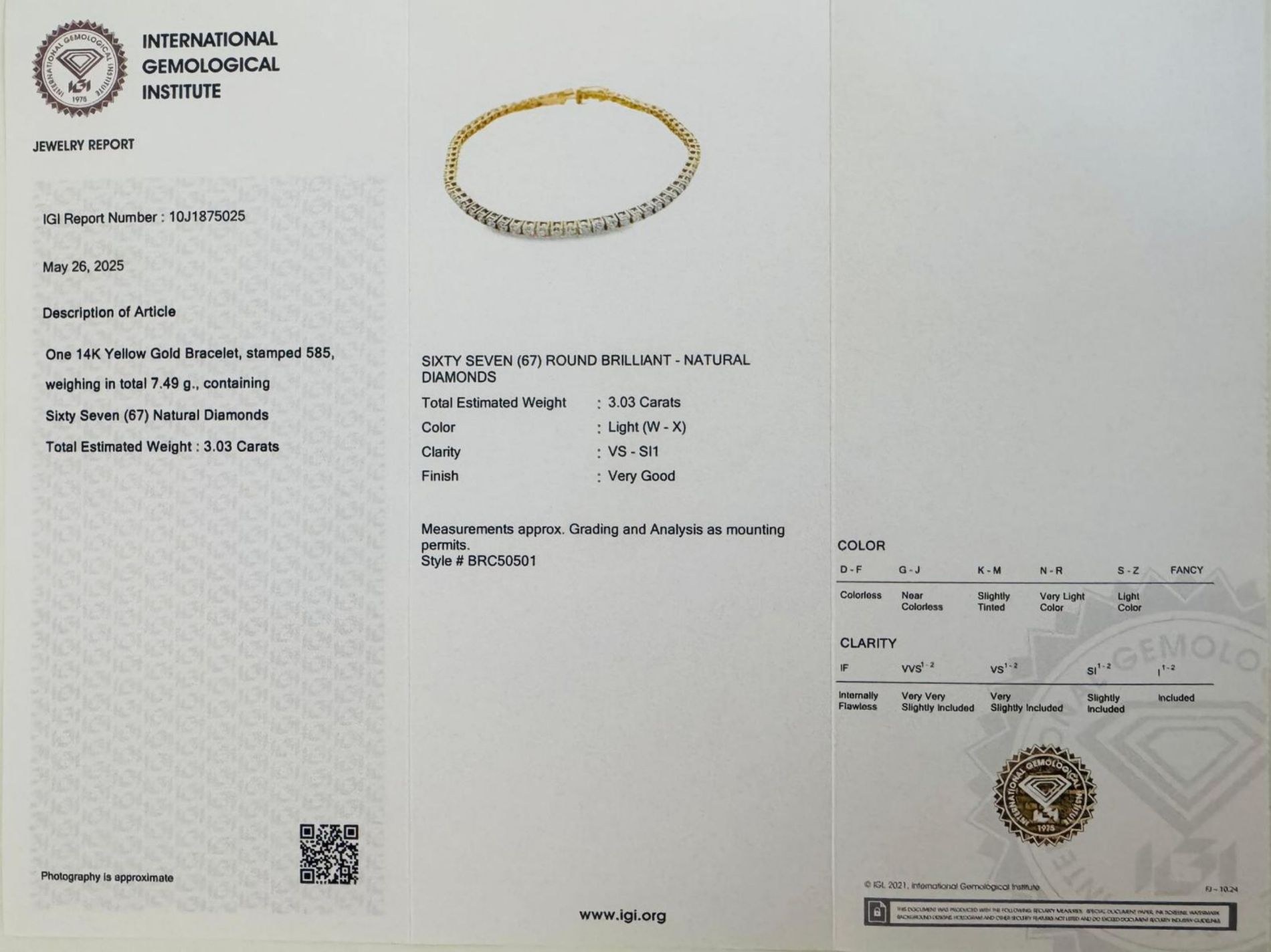 14K YELLOW GOLD TENNIS BRACELET 7.49 GR WITH 3.03 CT NATURAL DIAMONDS, COLOR LIGHT W-X, CLARITY VS-SI - SIZE 18CM - BRC50501 - AUCTION COMMISSION 25%