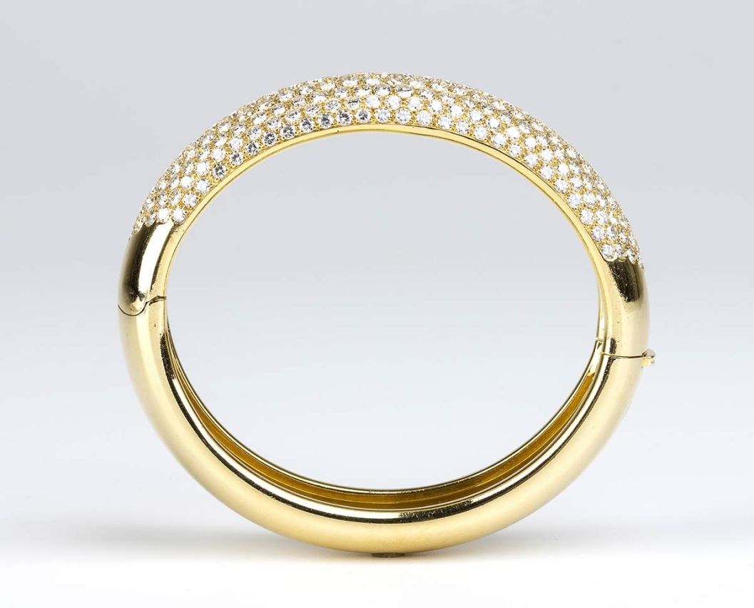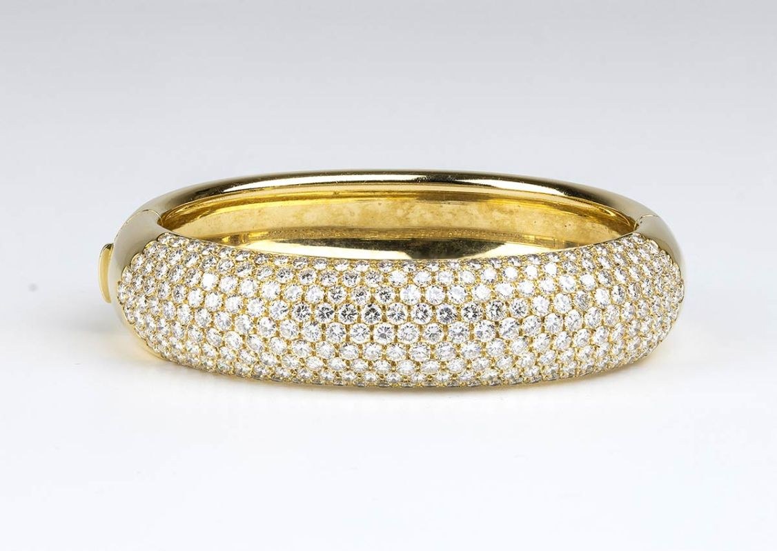 18k yellow gold, modelled as a band, with pavé set diamonds.
