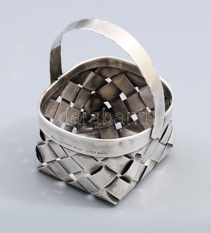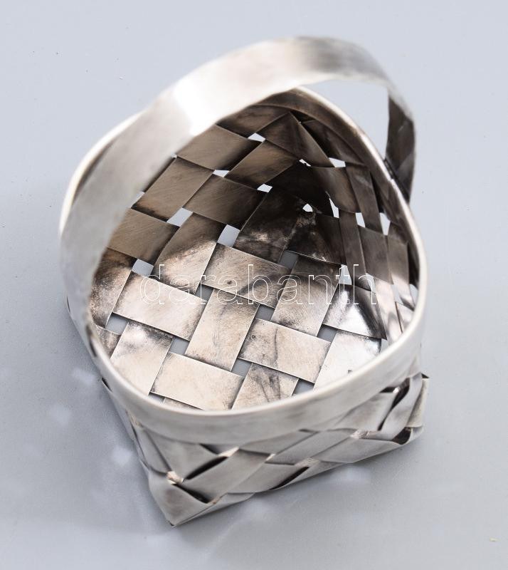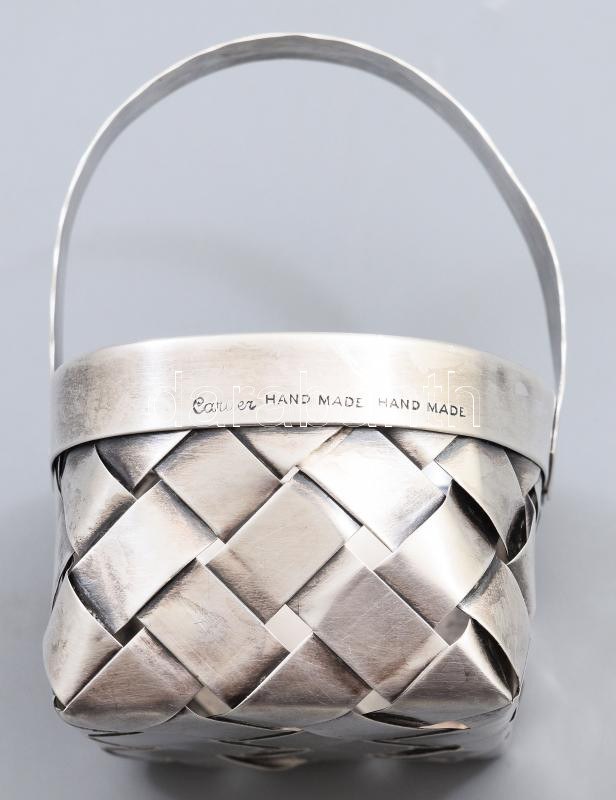 Cartier mid-century ezüst (Ag) fonott kosár alakú gyűrűtartó. Jelzett, m: 8,5 cm, nettó 46g