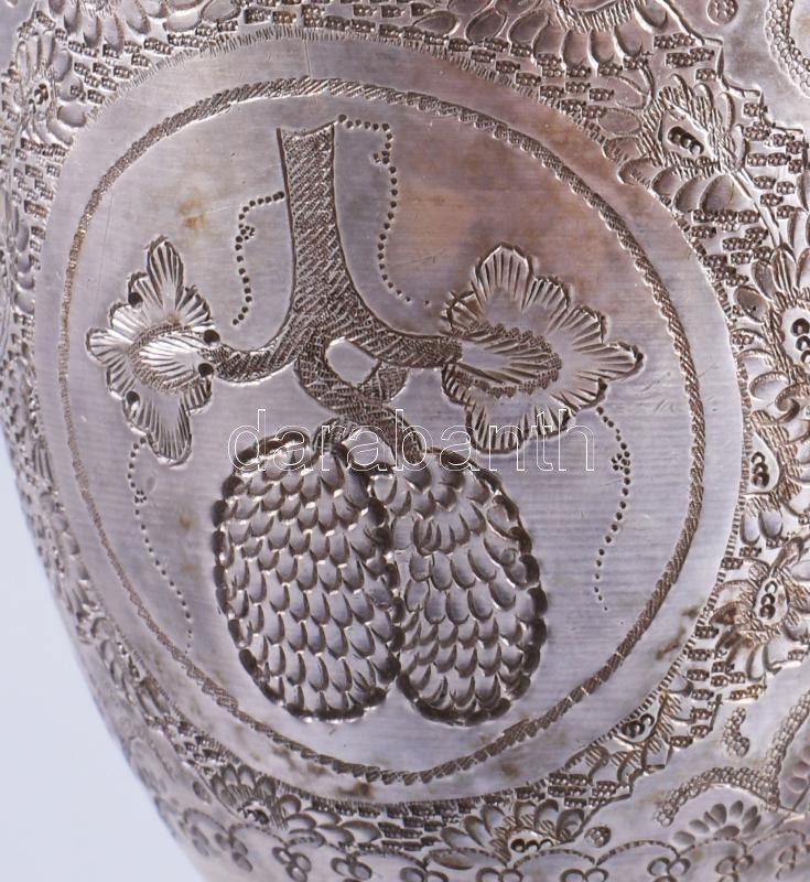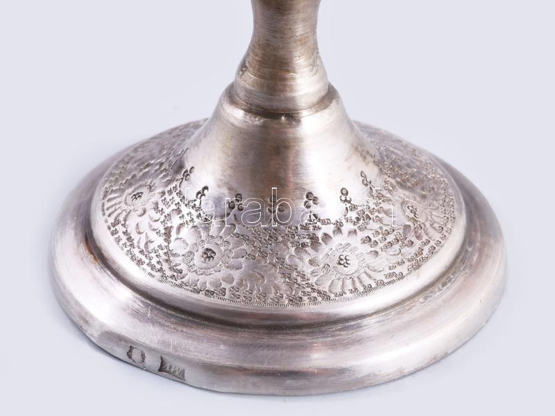 Ezüst (Ag) Kiddus pohár. cca 19. sz. utolsó harmada, jelzett, m: 15 cm, nettó 164g /// Silver (Ag) Kiddush Cup, circa last third of the 19th century, hallmarked, height 15 cm, net weight 164 g.