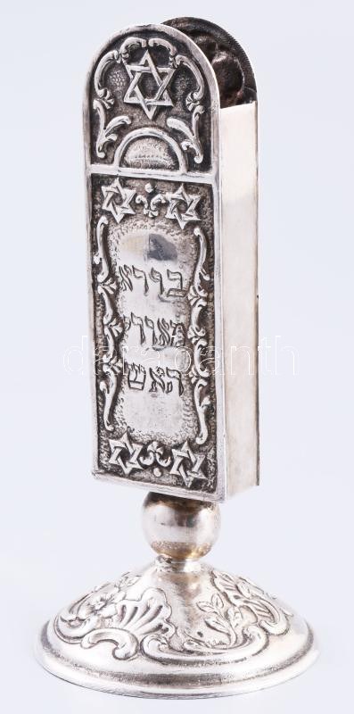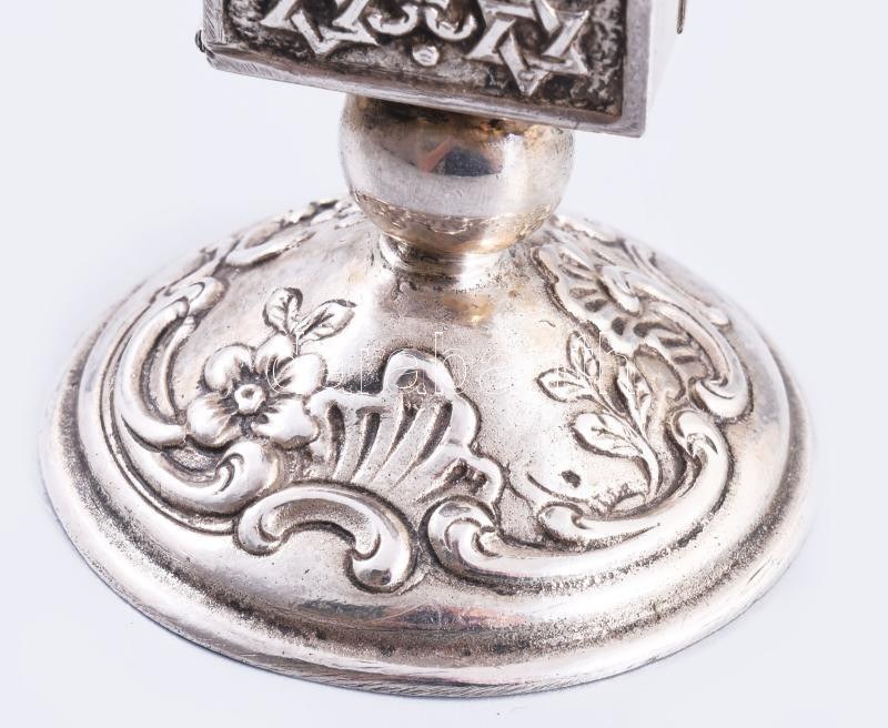 Ezüst (Ag) Sabbati havdala-tartó. 20. sz., jelzett, m: 12cm, nettó 82g /// Silver (Ag) Sabbati Havdalah holder. 20th century, hallmarked, height: 12 cm, net weight: 82 g