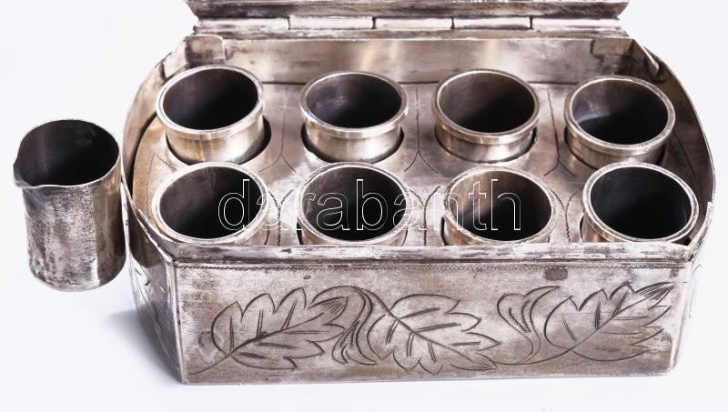 Ezüst (Ag) úti hanukkia, samesszal. Fedelén elefántcsont-lap rárakással, jelzett, 1810, Bécs, 13 latos, mesterjeggyel, 12x7x5,5 cm, bruttó 426g. Ritka! /// Silver (Ag) Travel Hanukkah Menorah with Samash, ivory inlay on the lid, hallmarked, 1810, Wien, 13-lot, with maker's mark, 12 × 7 × 5.5 cm, gross weight 426 g. Rare!