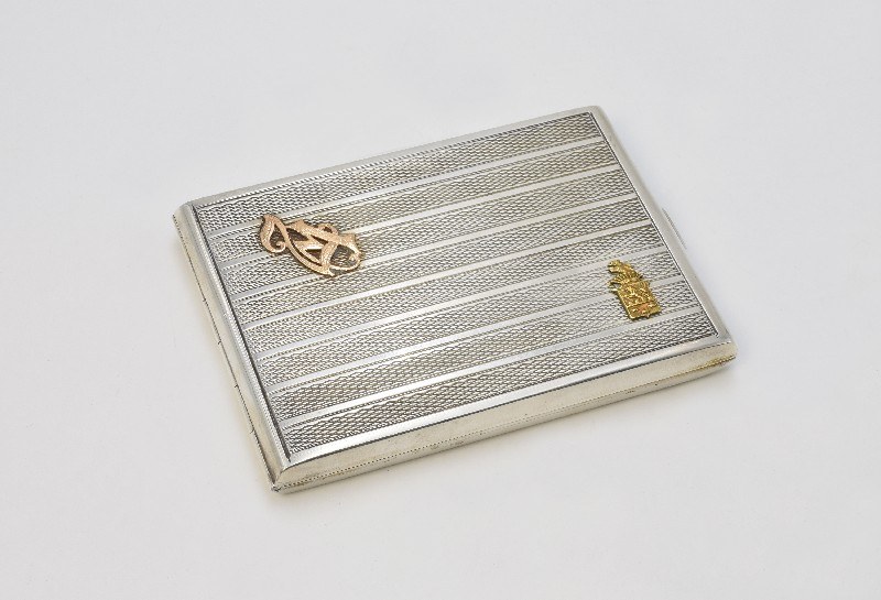 Prostopadłościenna, o wyoblonych krawędziach na osi dłuższej, wewnątrz złocona, zamykana na zatrzask. Na wieczku giloszowany ornament ułożony poziomo naprzemiennie z gładkim taśmowym. W lewym górnym rogu nakładany złoty monogram wiązany ZM, w dolnym prawym aplikowany złocony herb Zaremba pod koroną hrabiowską