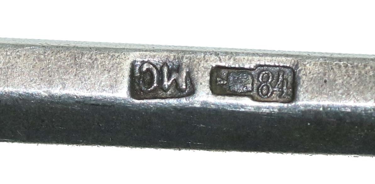 Łyżka, Moskwa, Maria Iwanowna Sokołowa, 1908-1917. Srebro, moskiewska cecha 84 z lat 1908-1917 oraz sygnatura wytwórcy MC - Maria Iwanowna Sokołowa. Długość 16,5 cm, srebro, waga 48,15 g.
