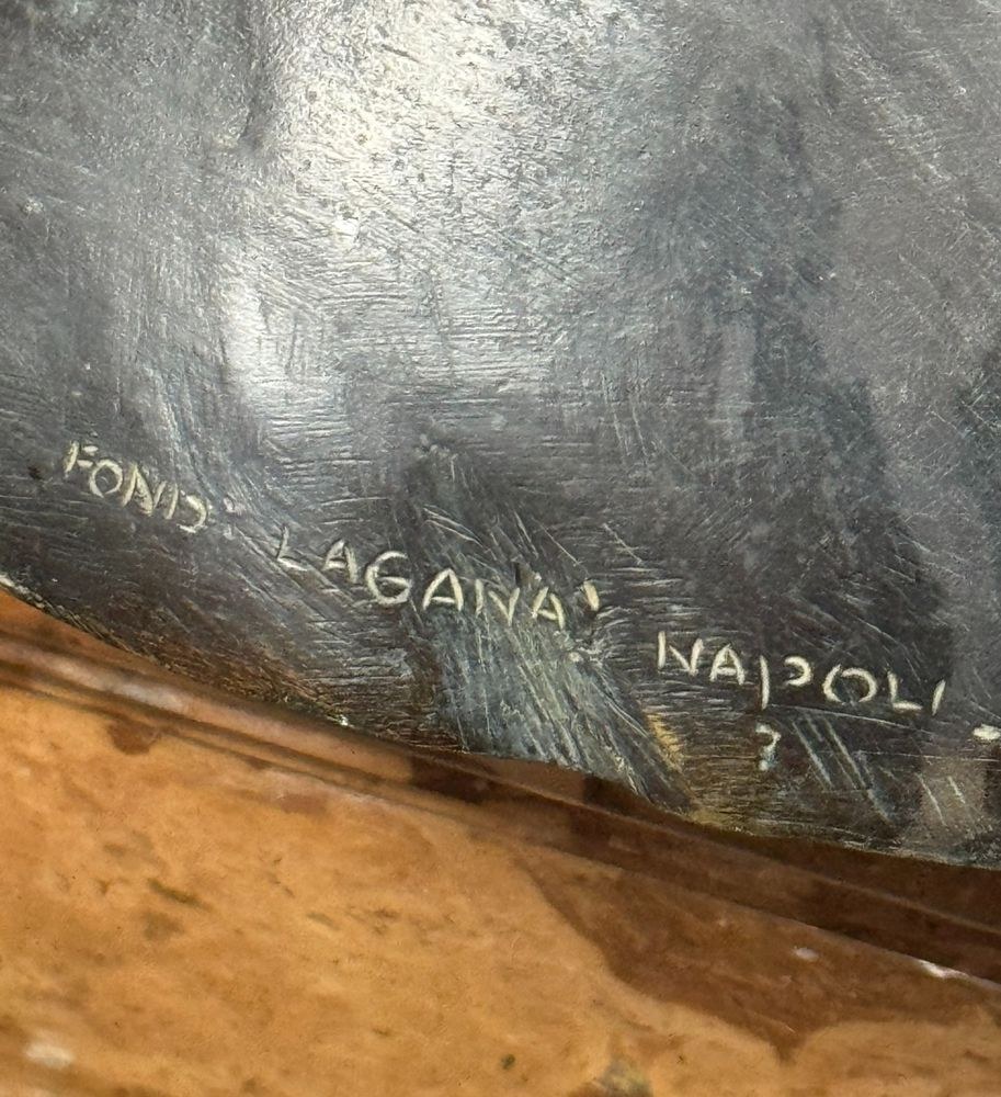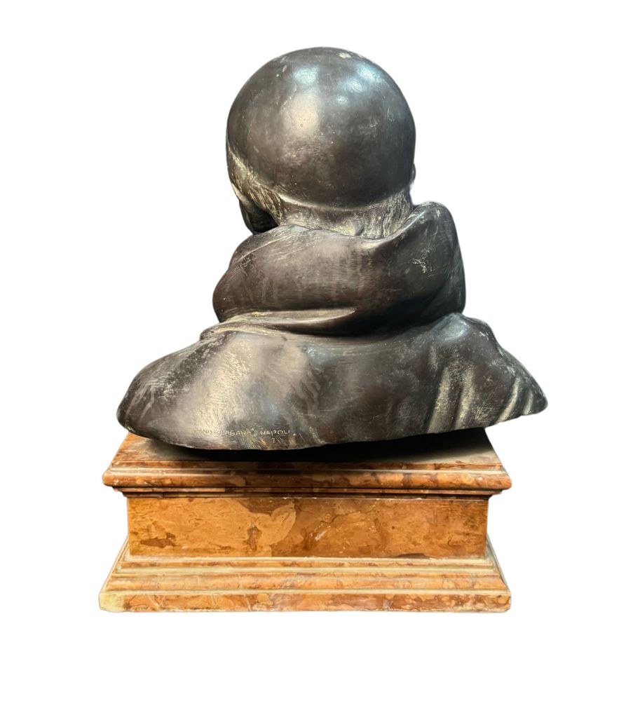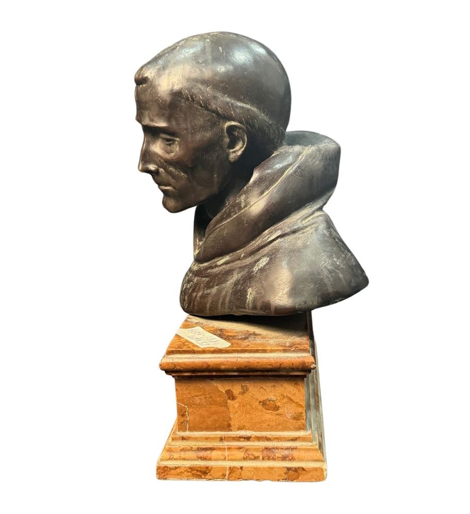 Bronze sculpture, patinated with lost-wax casting on a marble base, from the first half of the 20th century, depicting a Bust of a Cardinal. Signed by Fonderia Laganà Napoli. Dimensions: 42x34x20 cm. The work is in good condition.