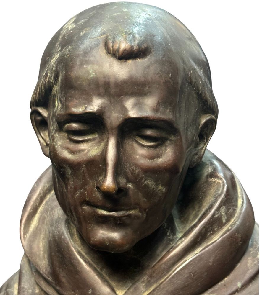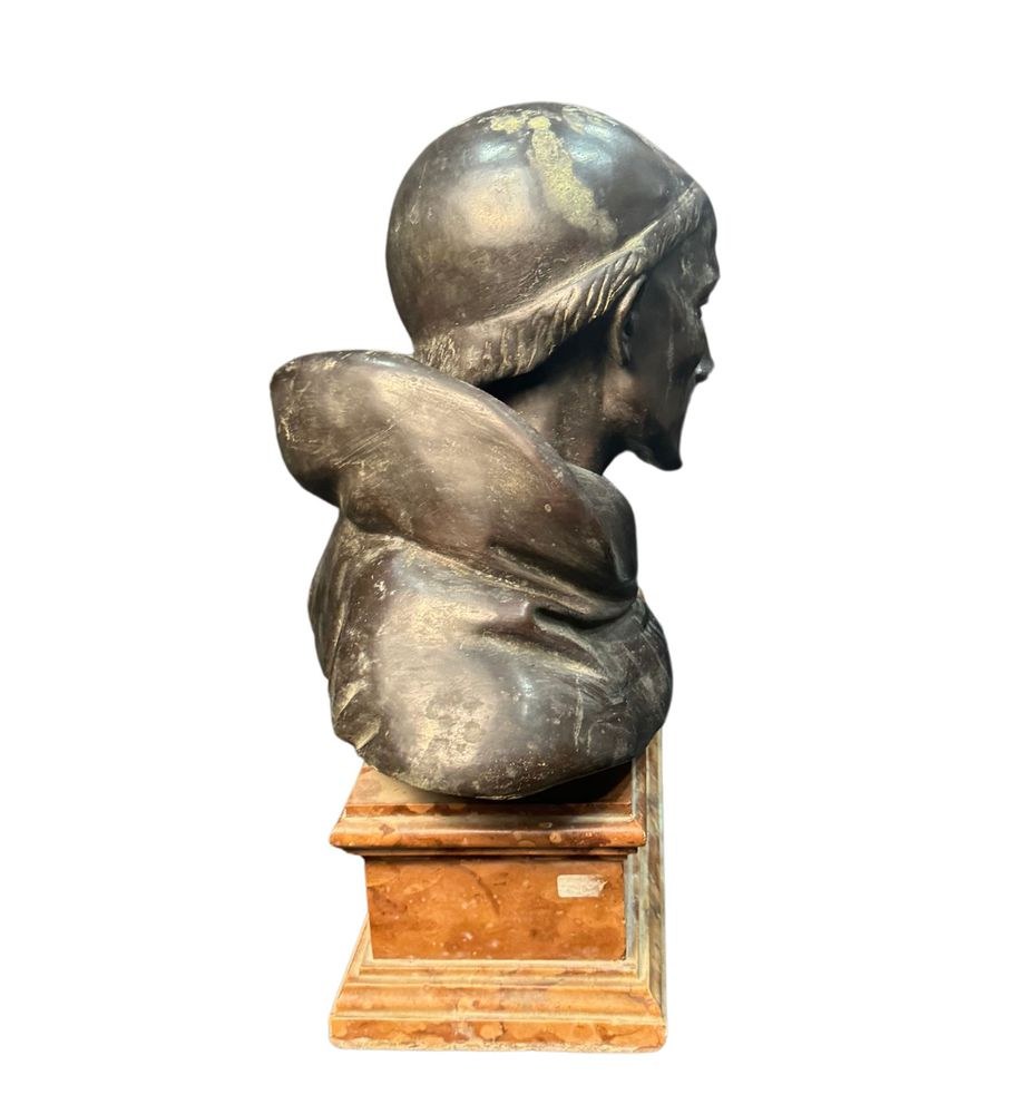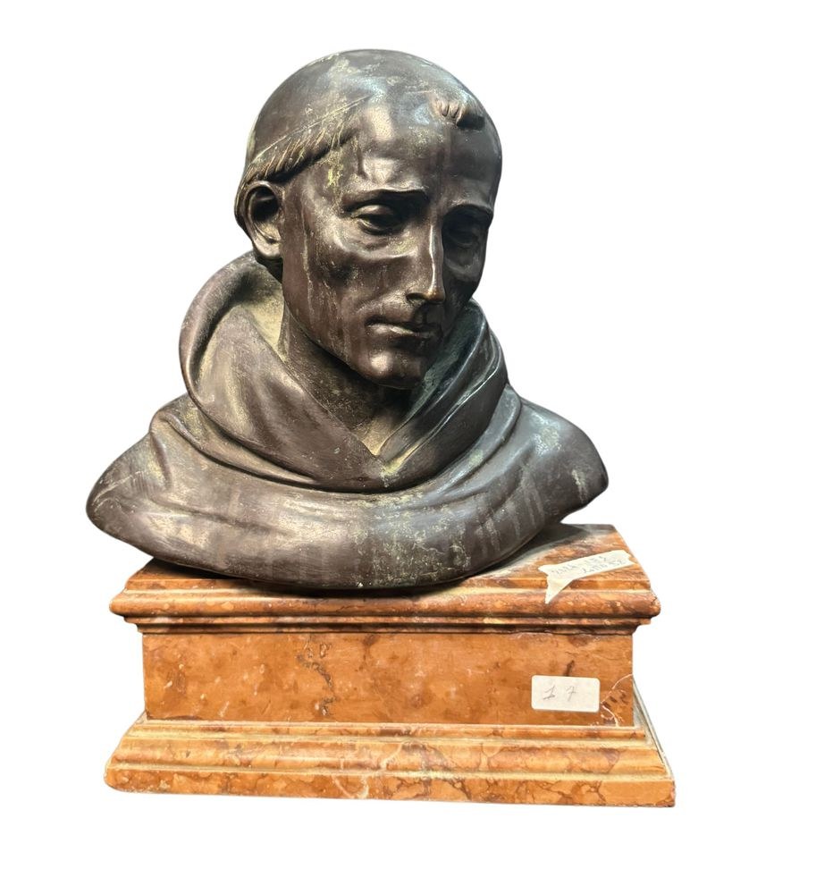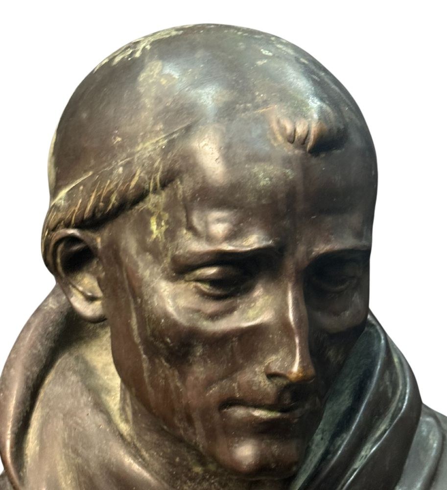 Bronze sculpture, patinated with lost-wax casting on a marble base, from the first half of the 20th century, depicting a Bust of a Cardinal. Signed by Fonderia Laganà Napoli. Dimensions: 42x34x20 cm. The work is in good condition.