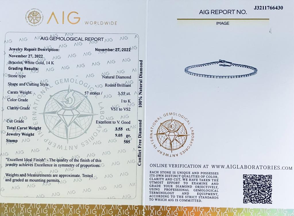 BRACELET IN 14K WHITE GOLD 9.05 GR WITH DIAMONDS FOR 3.55 CARATS COLOR I-K CLARITY VS1-2 AIG 18CM AIG CERTIFIED - BRC21002