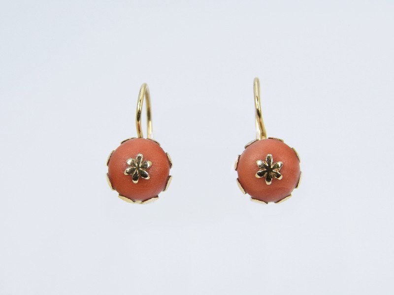wiszące, 2 szt. korali naturalnych w szlifie kaboszon o śr.7.90 - 8.00 mm w oprawie,