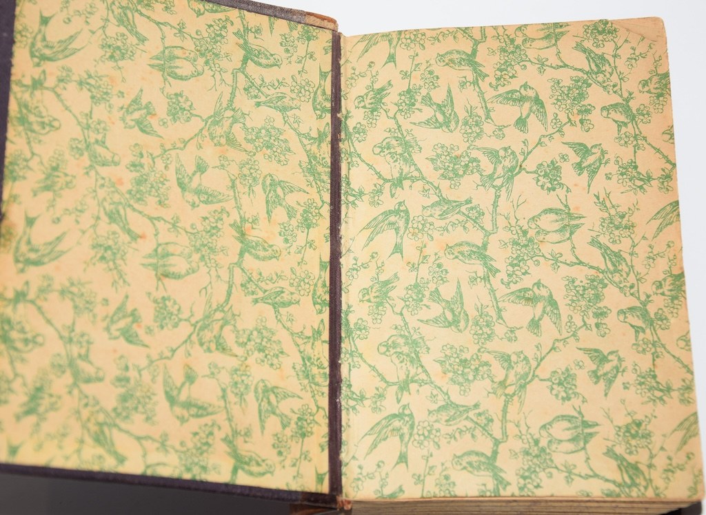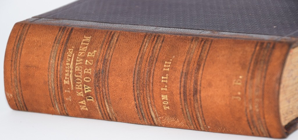 - Oprawa: twarda półskórek z epoki, złocenia na grzbiecie, ozdobne wyklejki, marmoryzowane brzegi kart