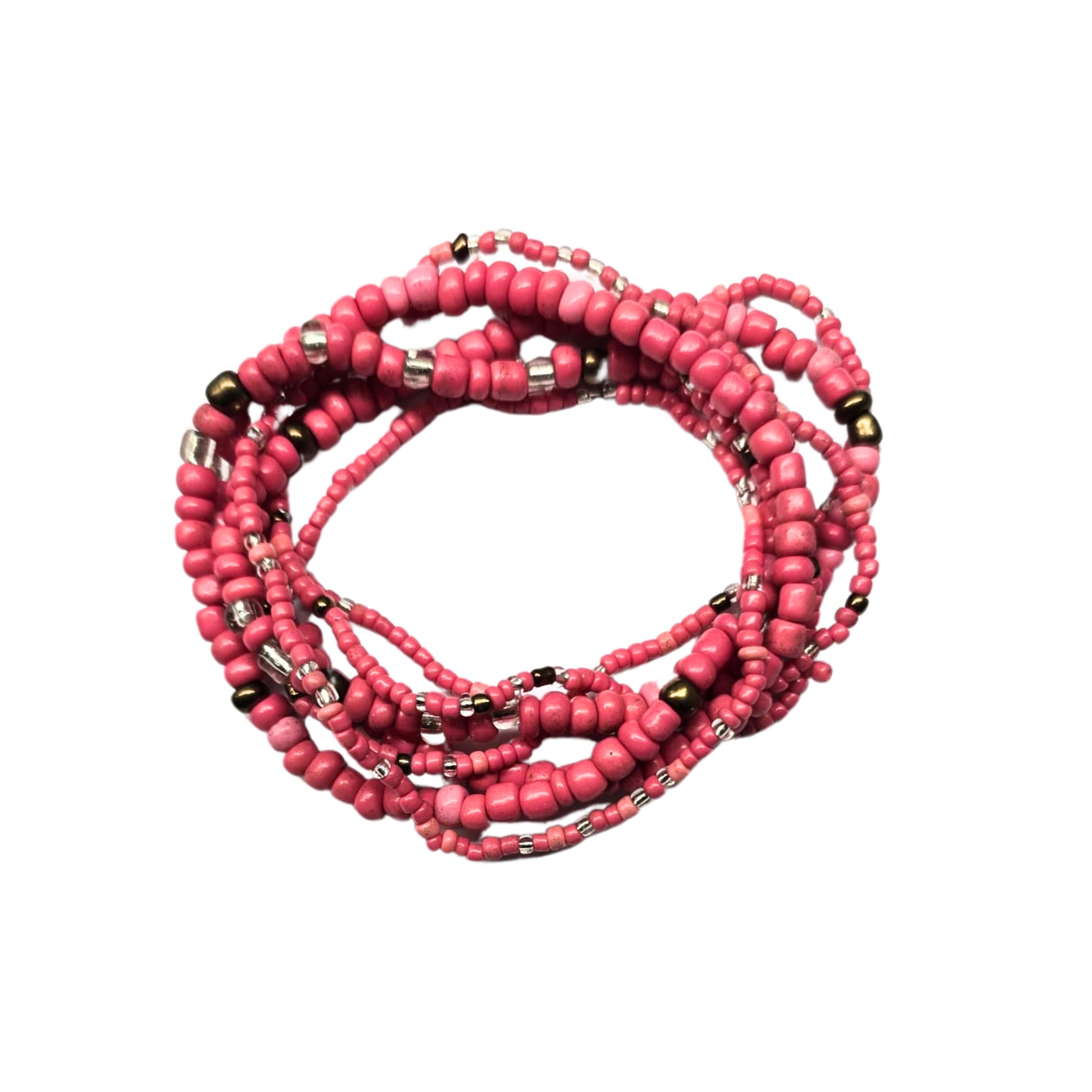 Komplet 7 bransoletek z różowych koralików.
