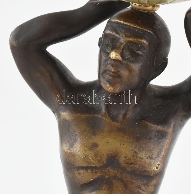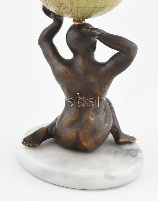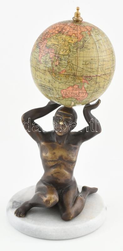 Jelzés nélkül: Atlasz. Bronz, földgömbbel a tetején, márvány talapzaton. Kopásokkal, m...