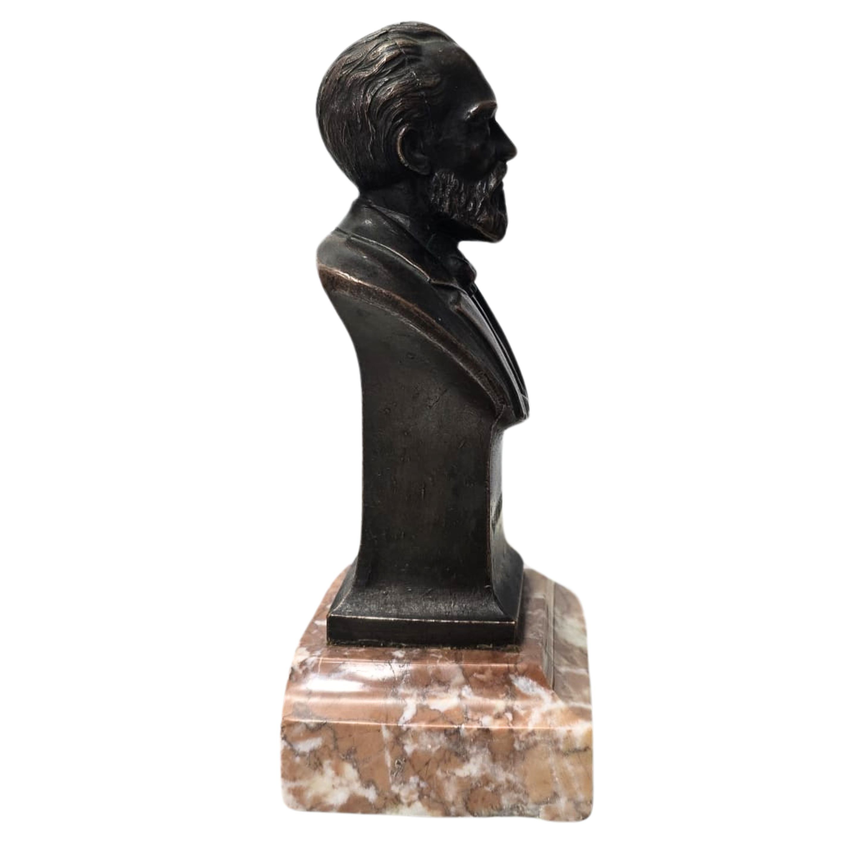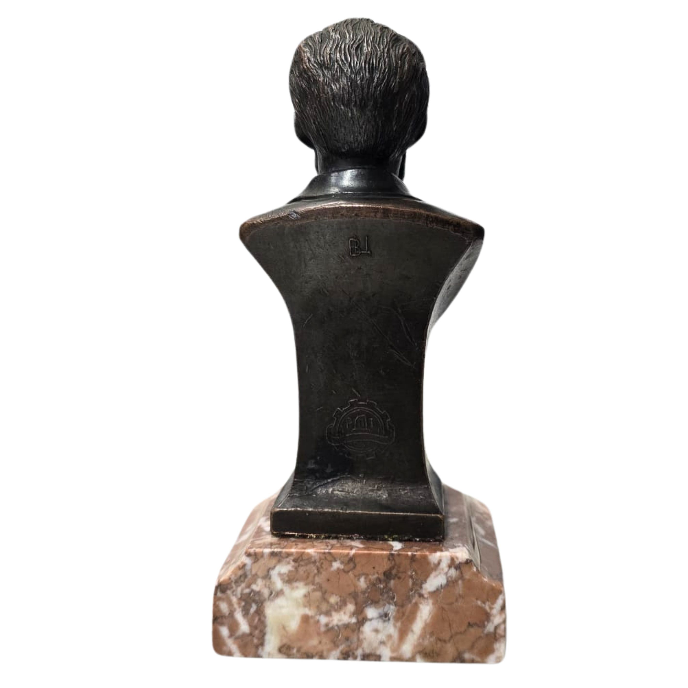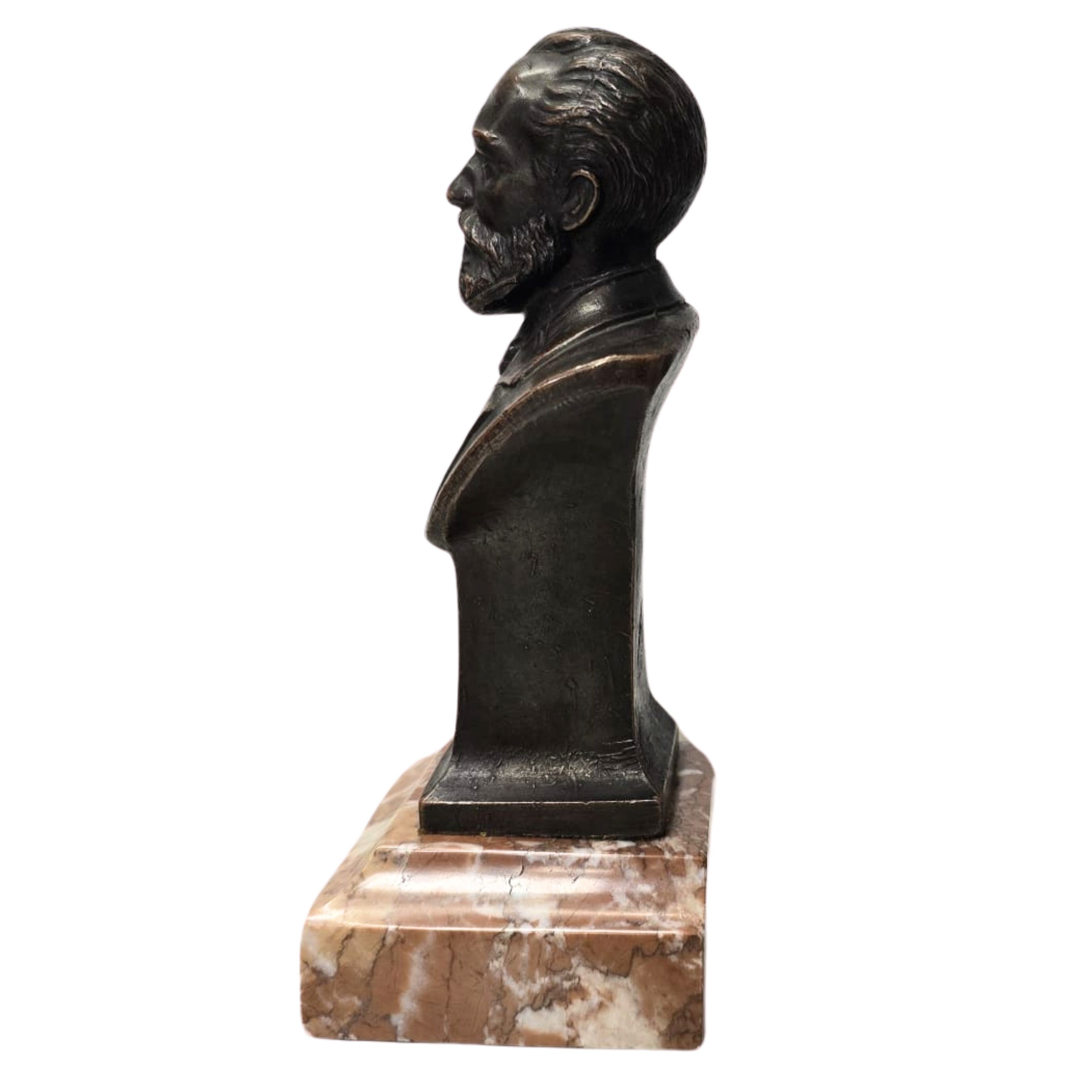 Brąz, marmur. Wymiary: wysokość 16 cm, wymiar marmurowej podstawy: 7,5X6,5 cm.