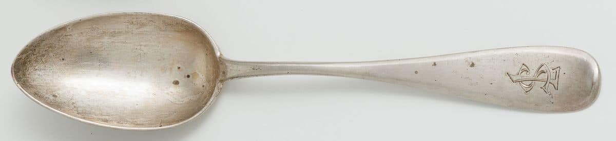 Srebro, pr. 84, waga 77,5 g, dł. 32 cm Puncowanie: Грачевъ, dwugłowy orzeł, 84, skrzyżowane kotwice i berło; A.H. Grawerowany monogram LS Cena wywoławcza 600 Estymacja 700 - 800 zapytaj o obiekt