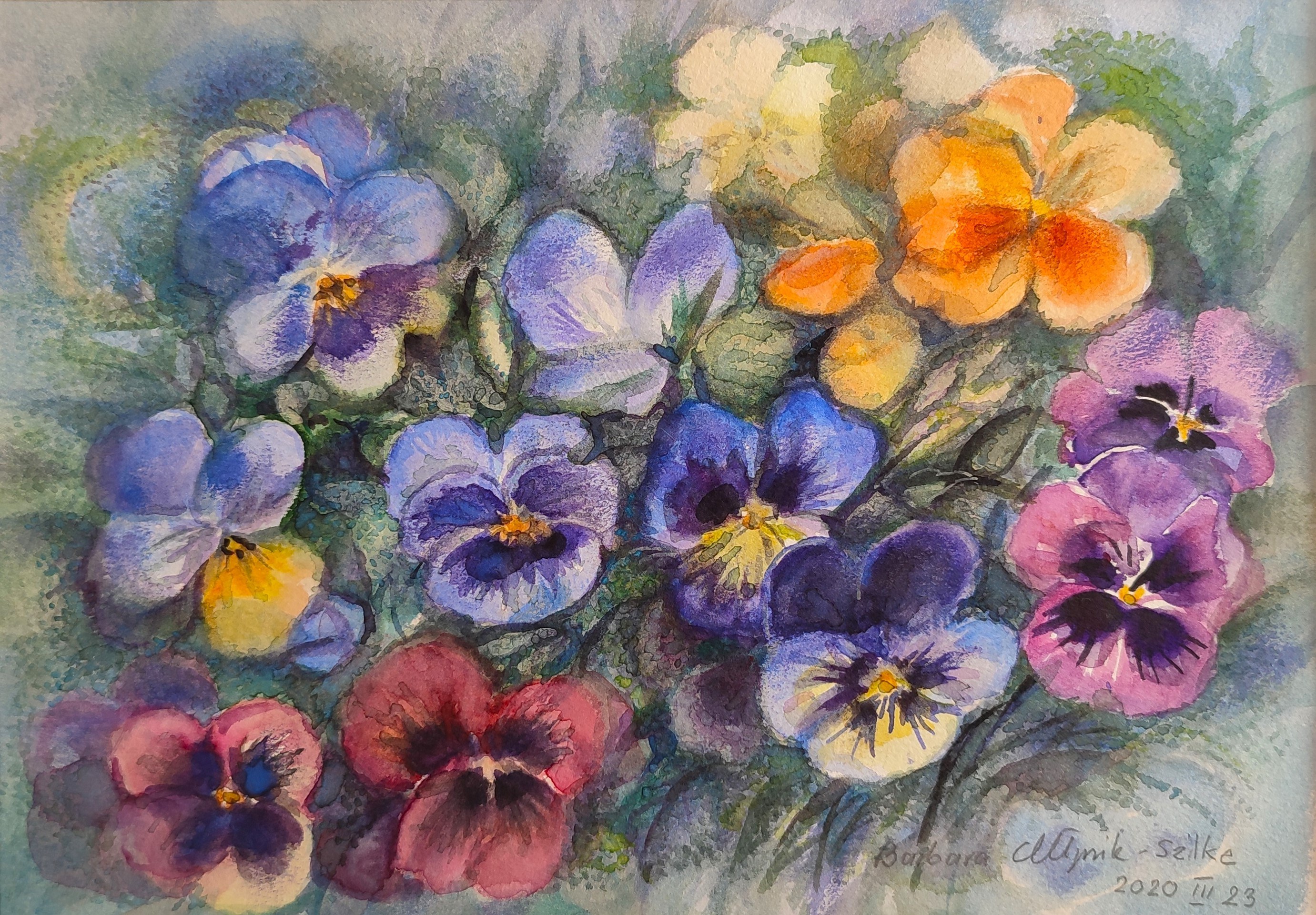 Maluje z pasją głównie akwarele, oleje i techniki mieszane.