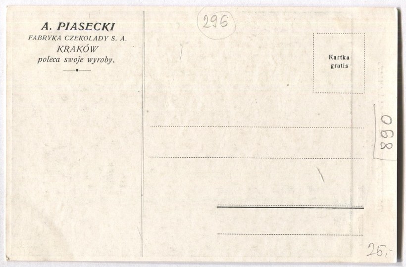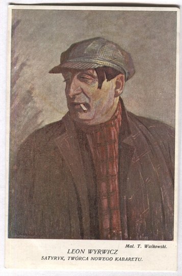Pocztówka reklamowa. Na stronie widokowej portret Leona Wyrwicza autorstwa T. Waśkowskiego, na odwrocie krótki tekst reklamowy. Stan dobry.