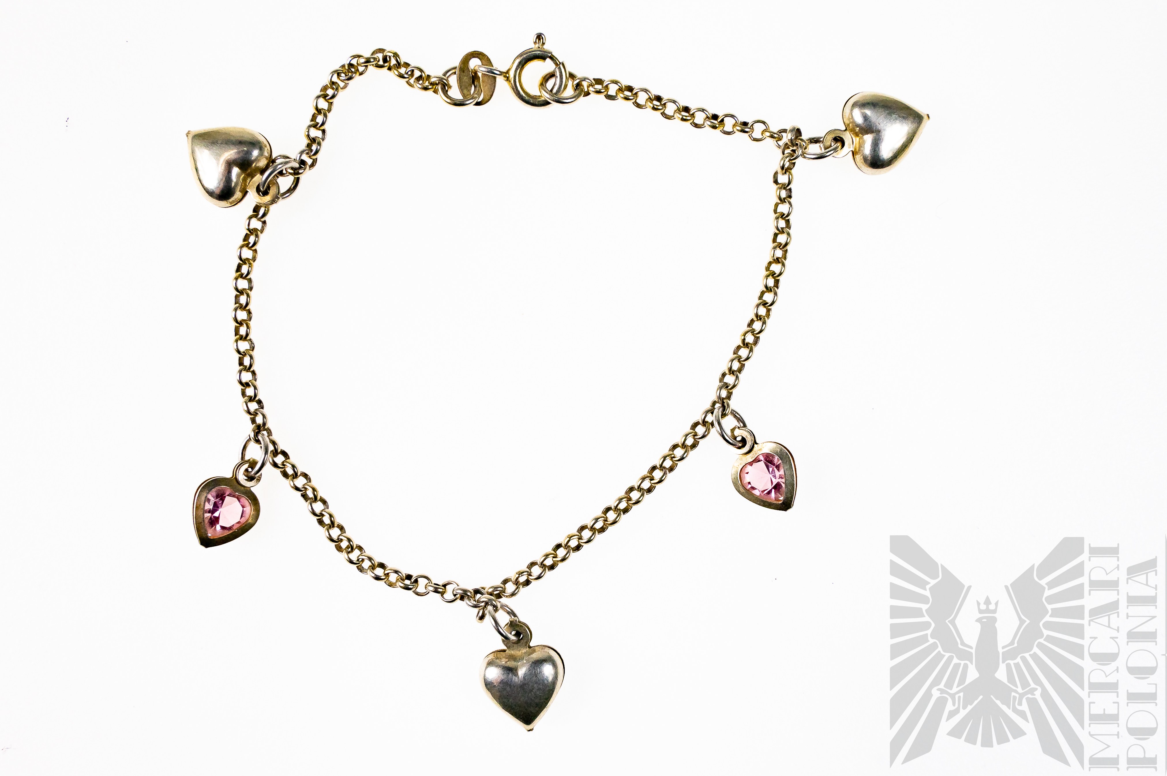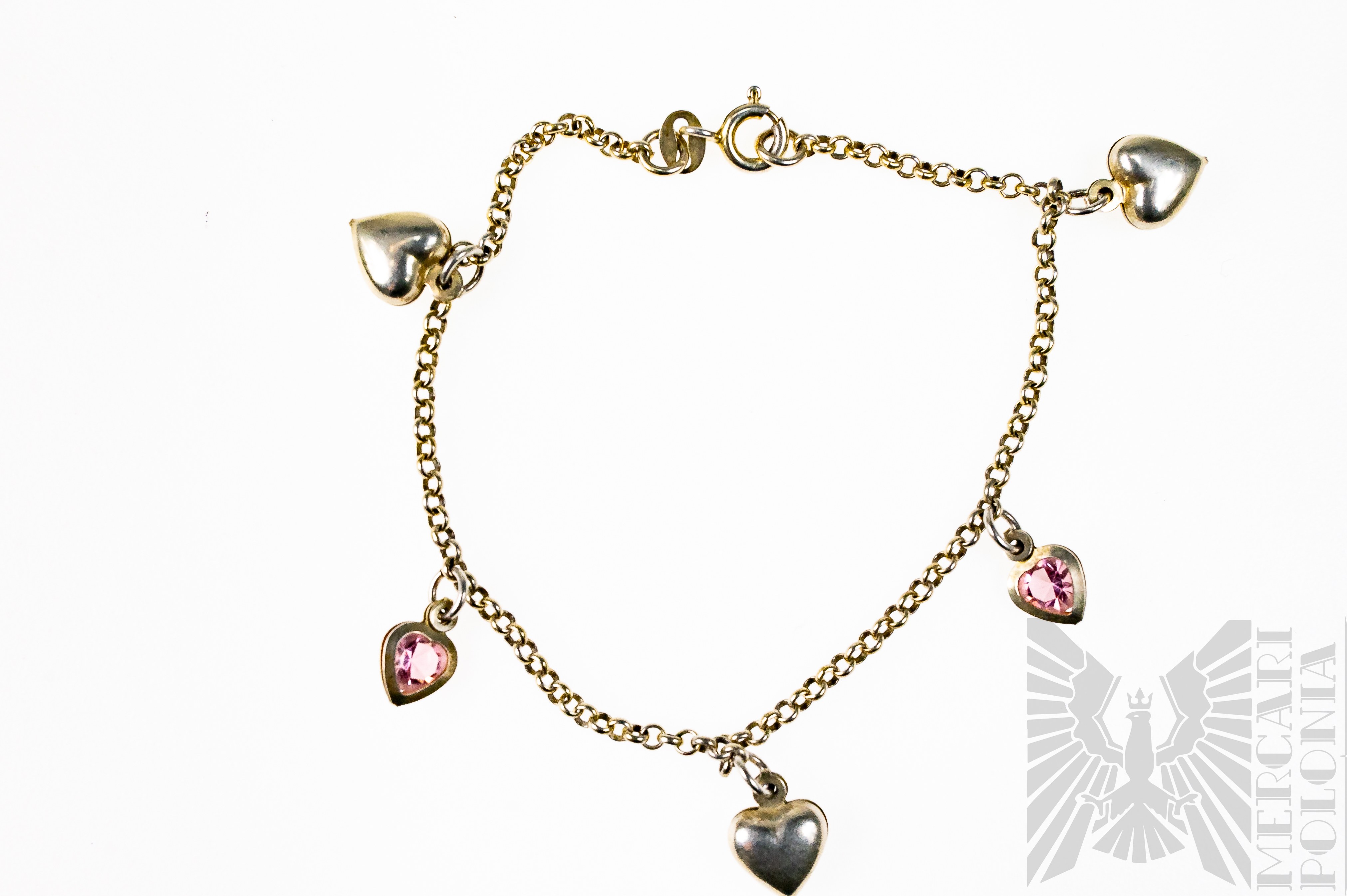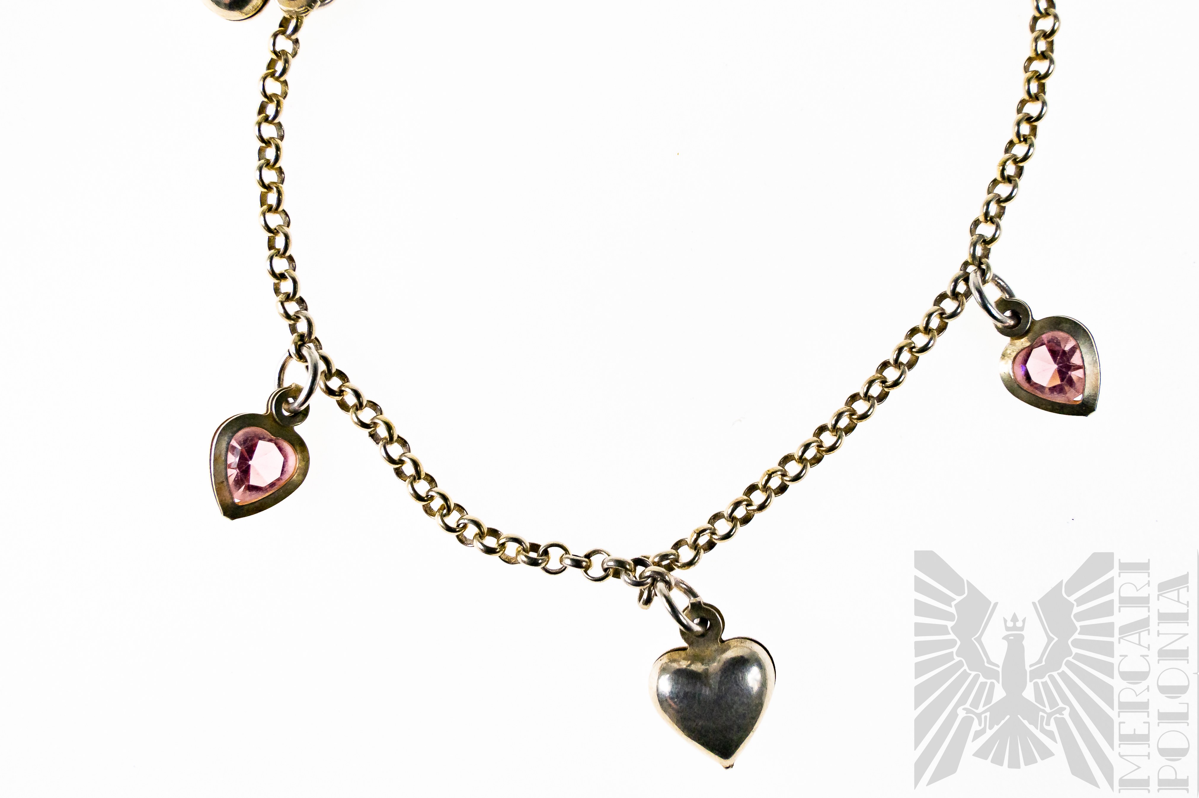Bransoletka Srebrna z Serduszkami i Cyrkoniami, masa wyrobu 4.21 gram, długość łańcuszka około 18 cm, splot łańcuszka belcher, Srebro 925