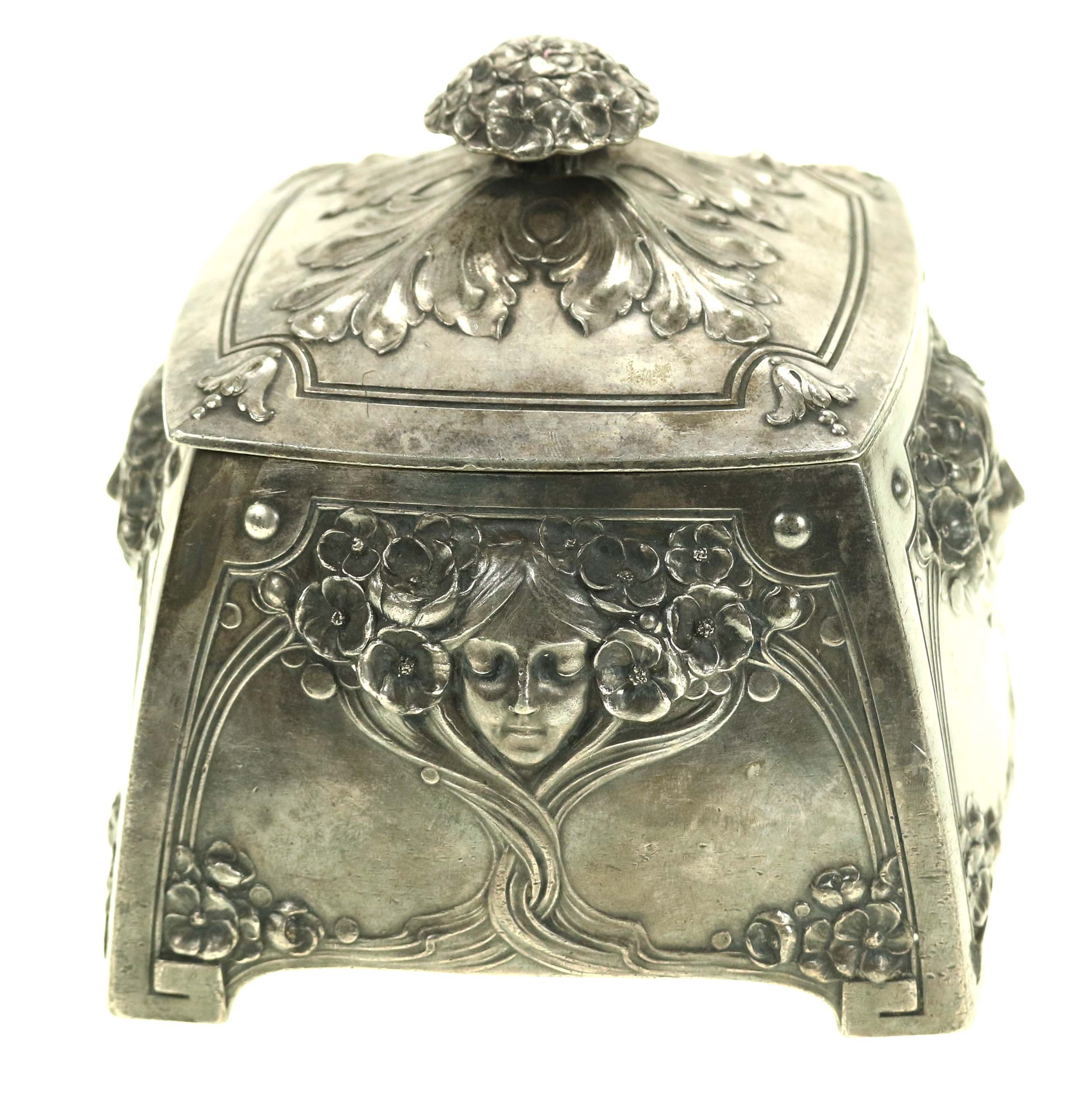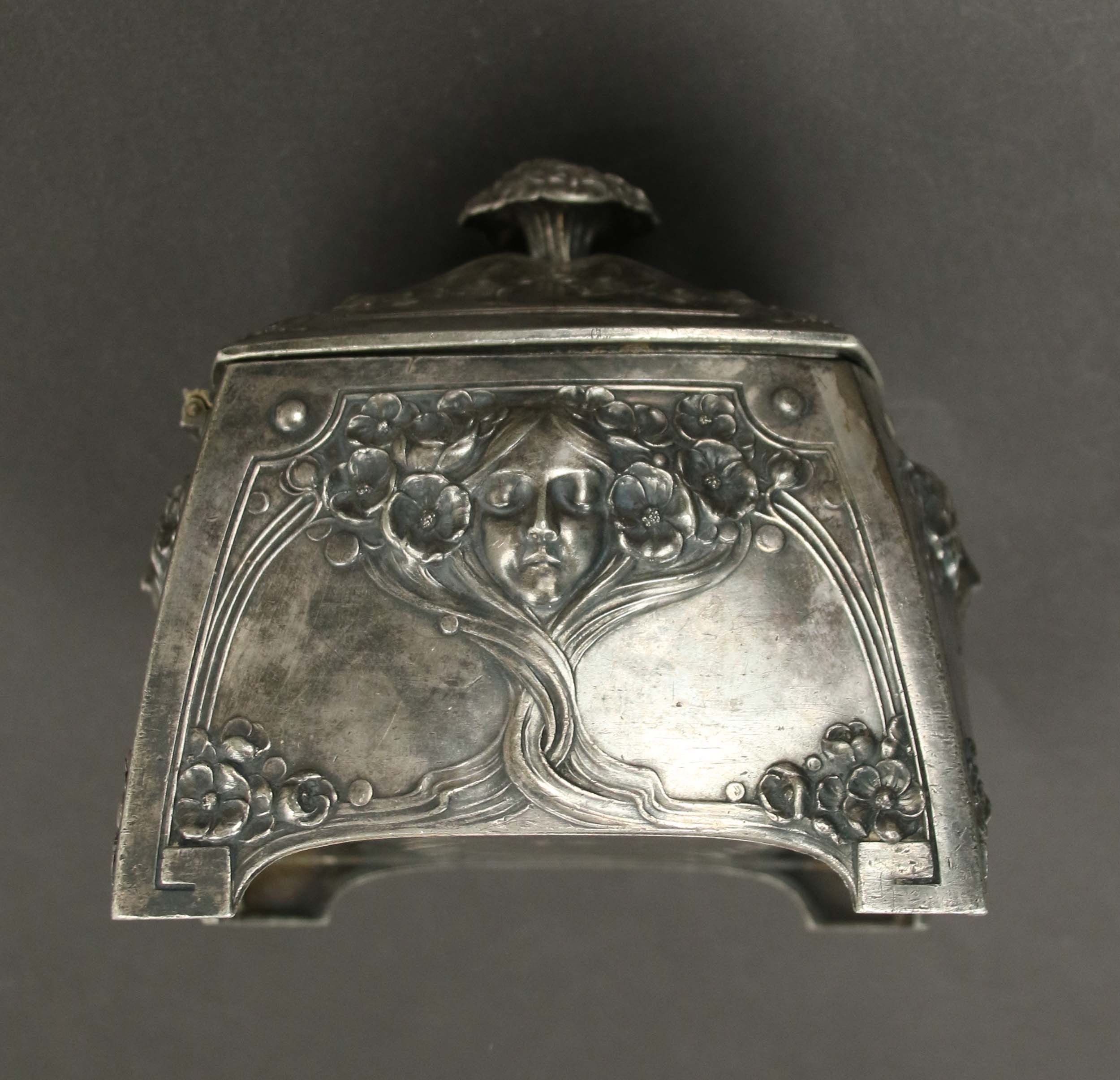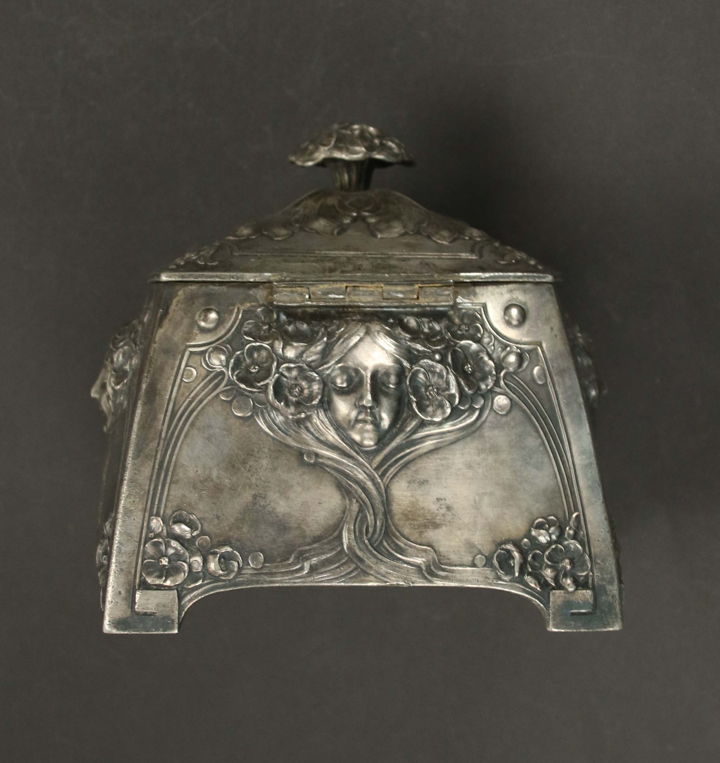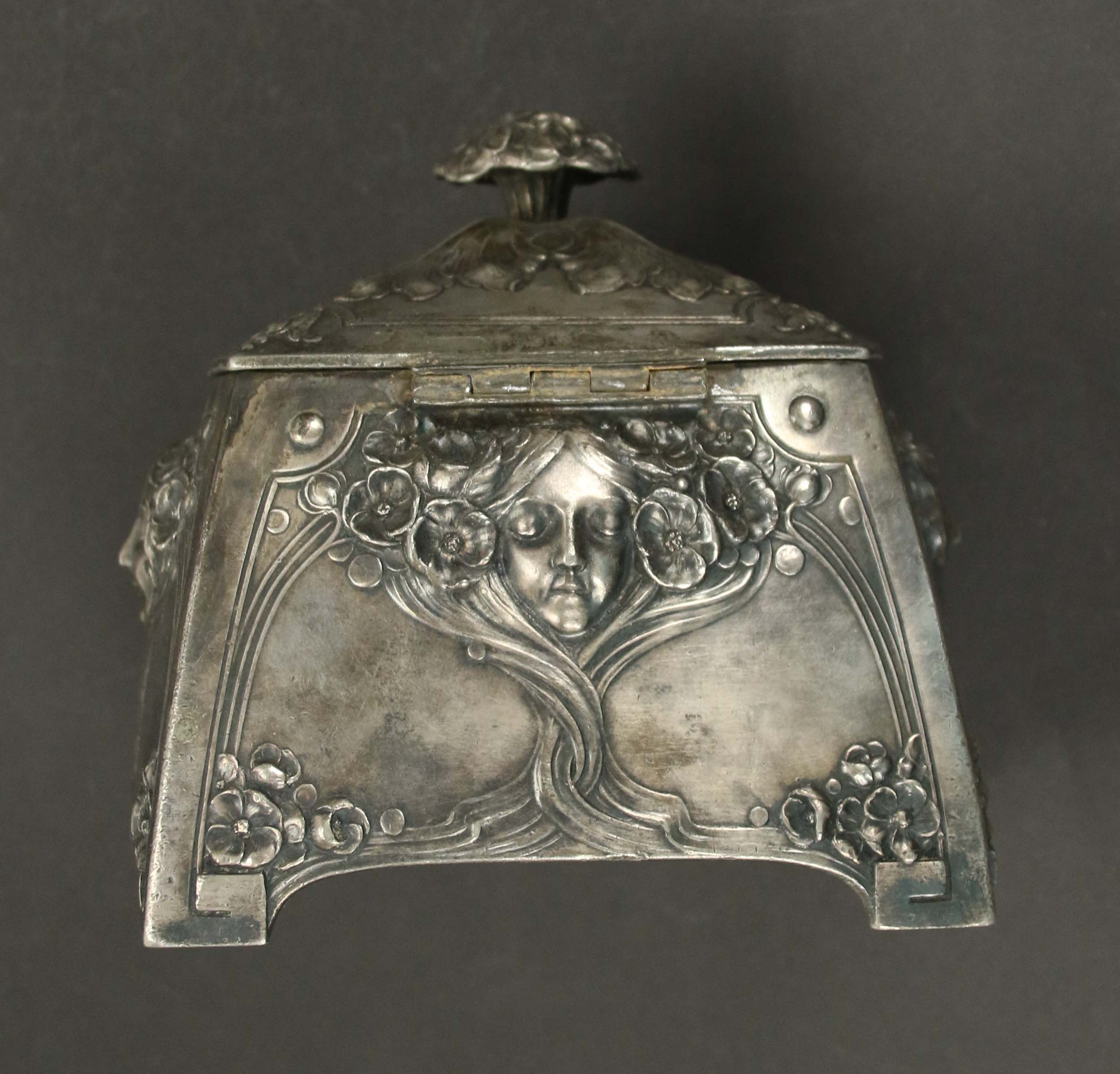 motywem otoczonej kwiatami kobiecej głowy, pokrywa na zawiasie,
