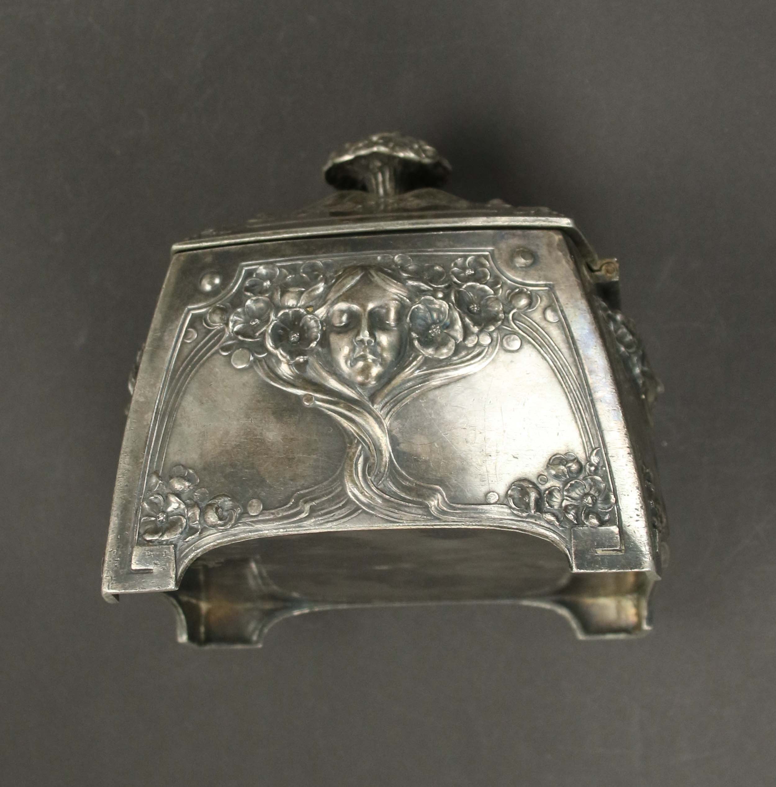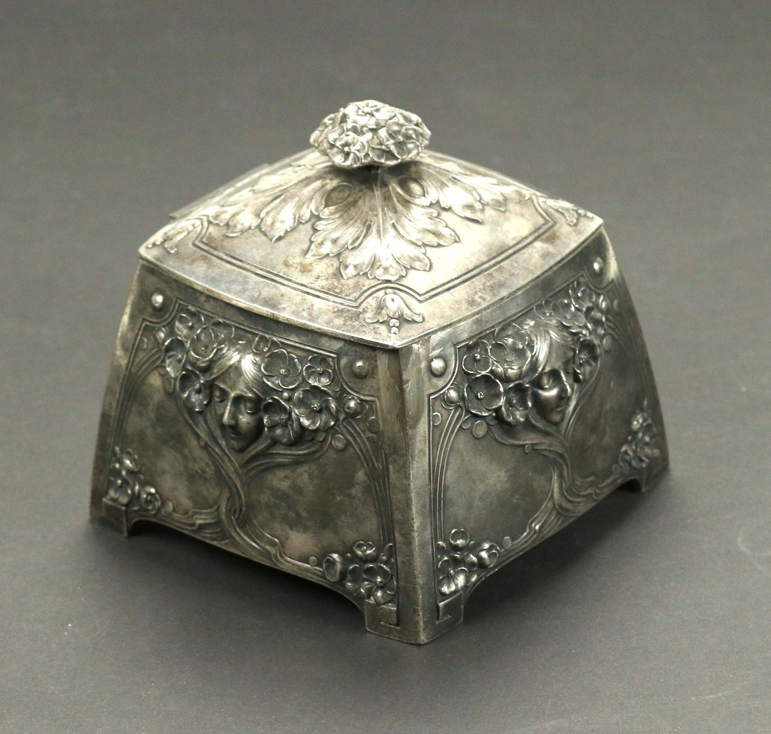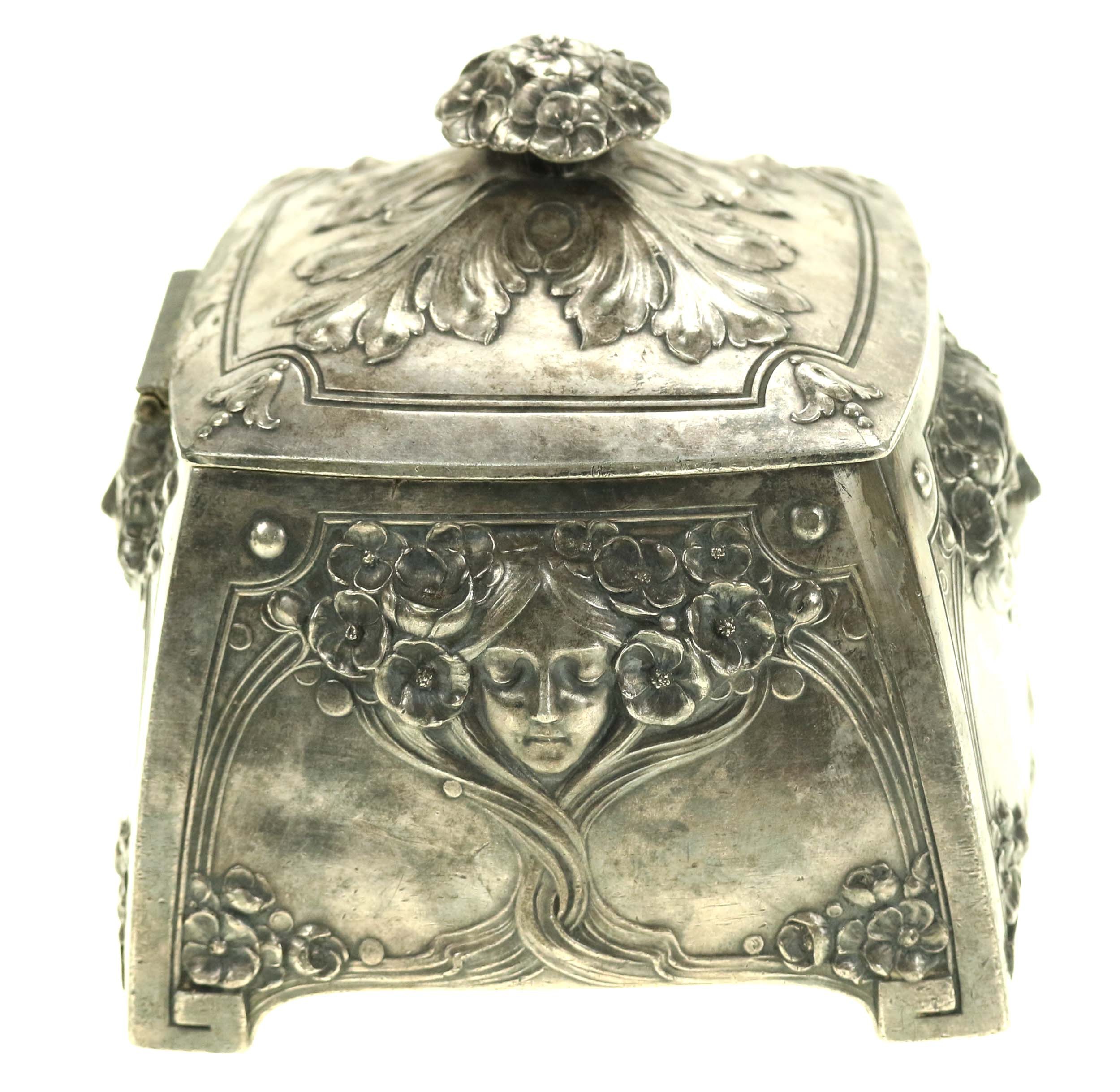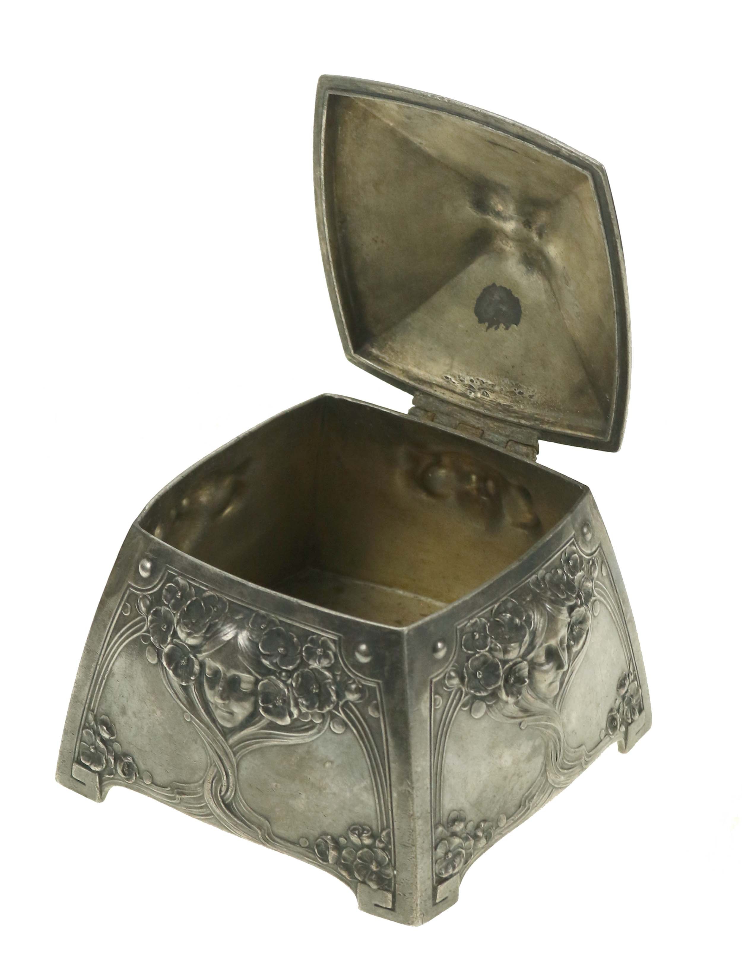 motywem otoczonej kwiatami kobiecej głowy, pokrywa na zawiasie,